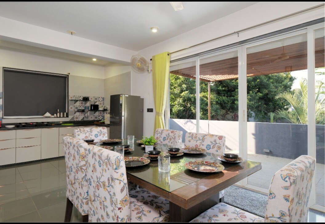 Premium 4BHK Residence in Vadodara – Ideal for NRIs & Professionals Experience international luxury with Indian hospitality in our fully furnished 4BHK home, perfect for NRIs, professionals, and long-term visitors. Each air-conditioned bedroom includes a private en-suite bathroom. Stay connected with high-speed Wi-Fi, cook in a modern kitchen, and unwind on a spacious terrace. Expertly managed for a seamless, high-comfort stay.