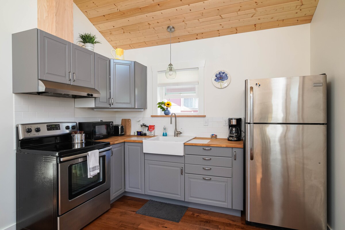 Construida recientemente en el 22, esta casa de huéspedes bellamente diseñada y todo lo que contiene es nuevo, por lo que puedes disfrutar de todas las comodidades de un hogar. El techo abovedado de 11 pies, la cocina de tamaño completo y la abundancia de luz natural son solo algunas de las cosas que hacen que esta casa de 565 pies cuadrados y un dormitorio parezca más grande de lo que es. Perfectamente ubicado a 1,8 millas del centro de Vancouver y a 15 minutos del aeropuerto PDX y Portland Oregón; es el alojamiento perfecto para tu estancia. *Limpieza y desinfección profesional entre estancias*