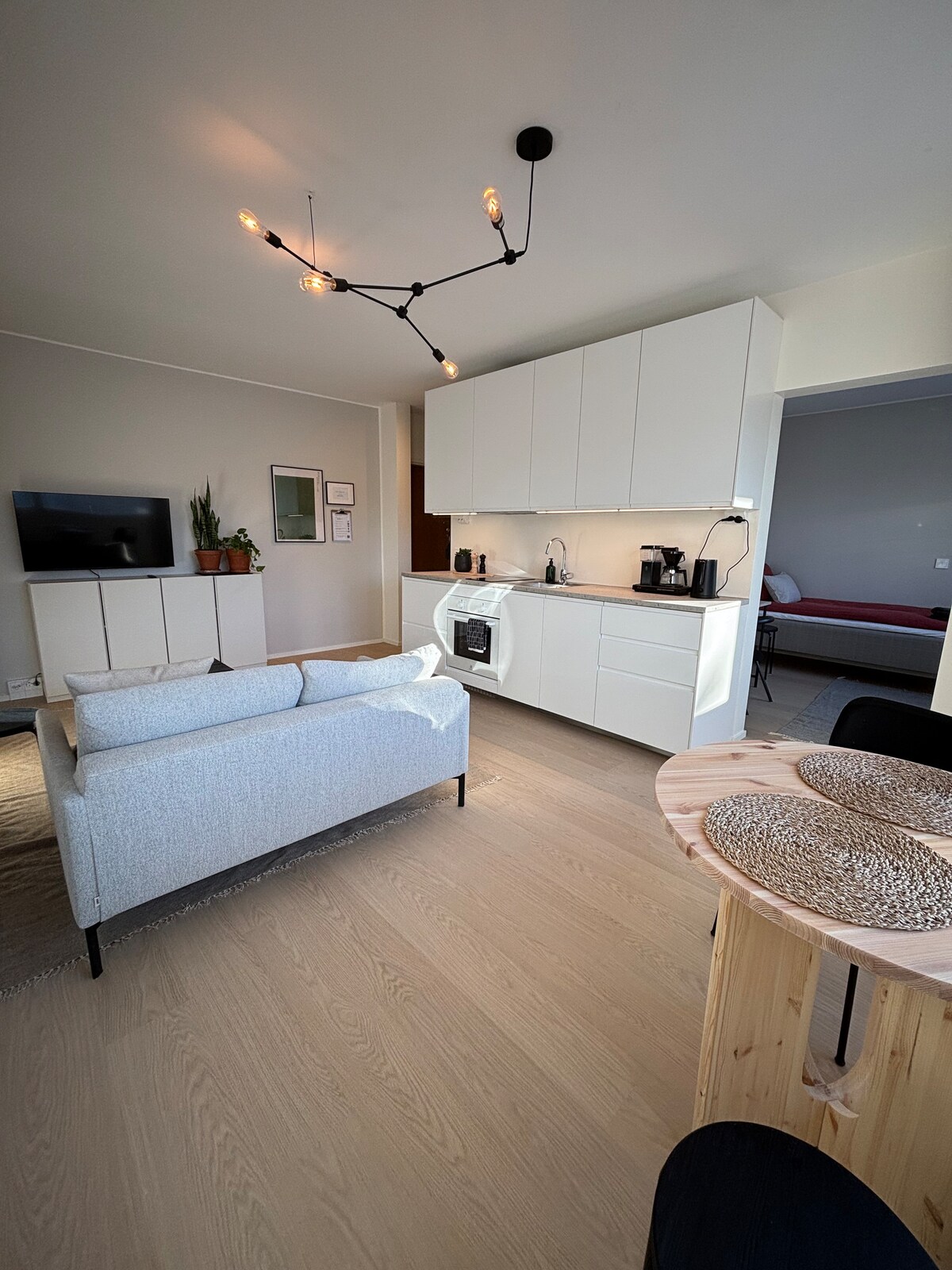 Bienvenido al nuevo y hermoso apartamento de 31 m2 cerca del aeropuerto de Helsinki, a solo 150 metros de la estación de Kivistö. Se tarda solo 6 minutos en llegar al aeropuerto de Helsinki y 25 minutos en tren al centro de la ciudad de Helsinki. La sala de estar y la cocina comparten el espacio con 2 camas individuales, un sofá cama doble para 4 huéspedes. La cocina y el baño son modernos y están bien equipados. El estudio encaja bien con familiares y amigos que viajan, así como con personas en viajes de negocios. Todos los servicios necesarios y transporte público a la vuelta.