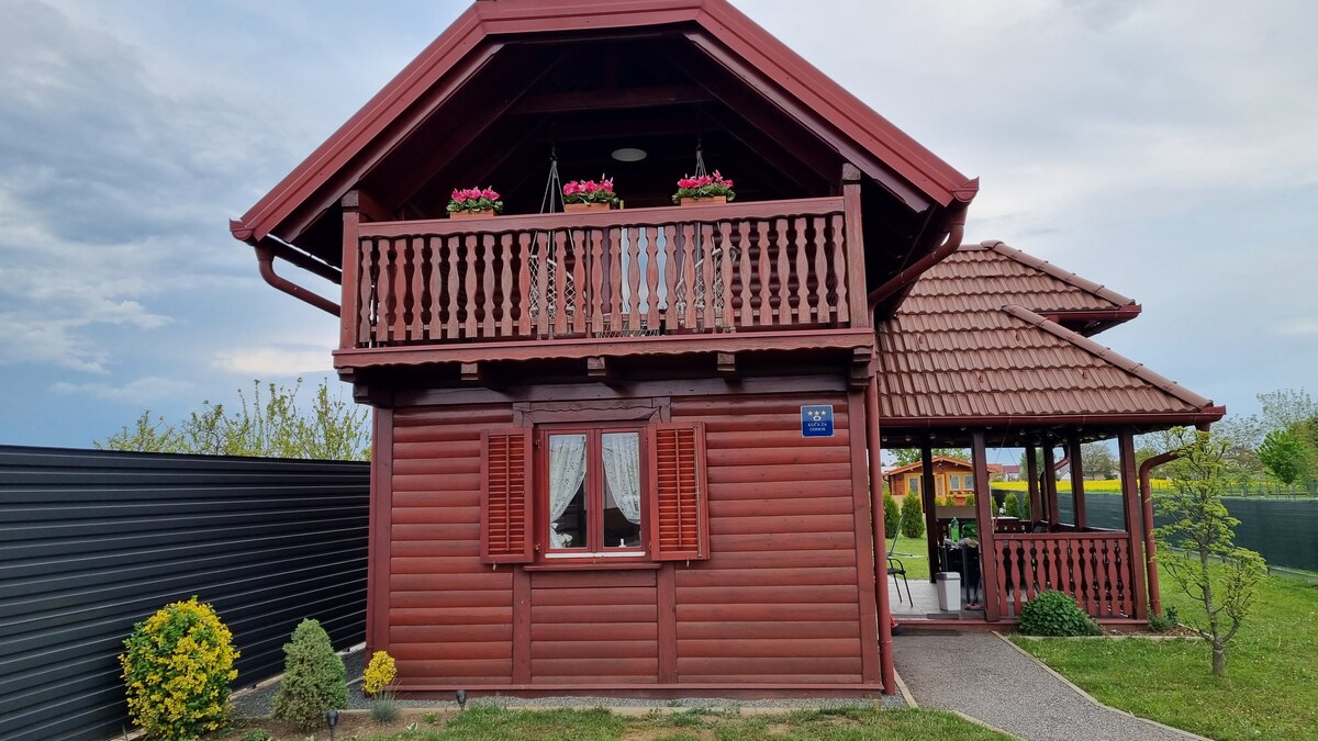 La casa de vacaciones de madera de aprox. 55 m2 se encuentra a una distancia de 5,6 km del centro de Varaždin. Se encuentra al final de una calle tranquila. La casa consta de un amplio y bellamente decorado salón, cocina, baño y terraza en la planta baja y un dormitorio y terraza en el primer piso. En la parte posterior del patio hay una nueva bañera de hidromasaje, ducha solar, tumbonas y una red para relajarse. El uso del jacuzzi está incluido en el precio.