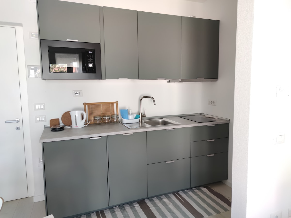 Simpatico spazio abitativo open space, dotato di angolo cucina, con tutte le attrezzature, lavastoviglie (con detersivo), microonde, bollitore. Zona soggiorno con divano e TV. E' presente un grande bagno con doccia e asciugacapelli. L'ospite troverà lenzuola (con cambio settimanale), asciugamani (con una sostituzione nel corso della settimana), tovaglie e tutto il necessario per l'igiene ambientale. Comodo parcheggio in area recintata privata adiacente alla abitazione e spazio per biciclette.