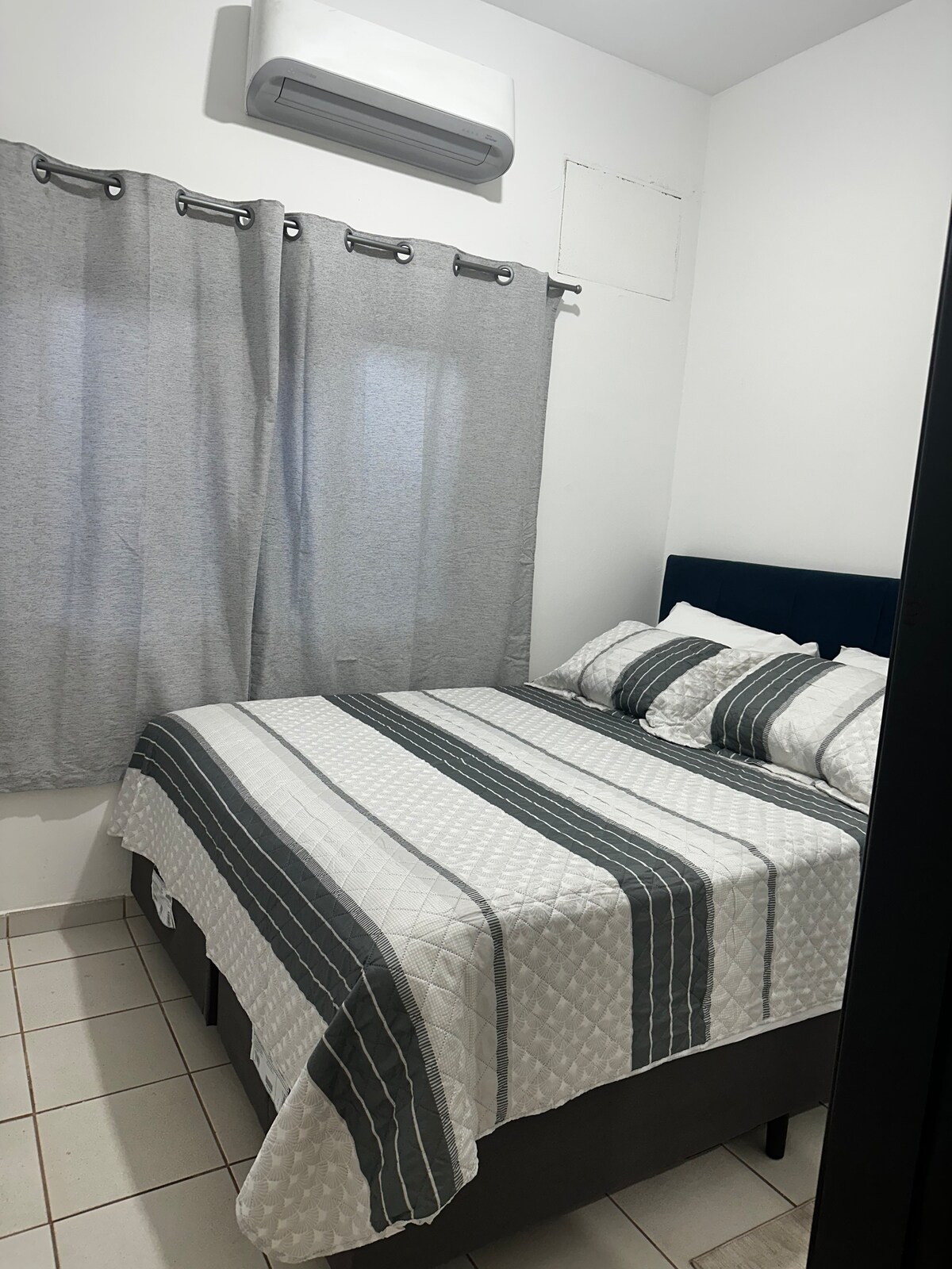 Bienvenido a tu escapada ideal: Aquí encontrarás todo lo que necesitas para una estancia práctica, segura y cómoda ✨ Aspectos más destacados de la propiedad: Capacidad para un máximo de 4 personas cómodas ❄️ 2 potentes aparatos de aire acondicionado (¡habitaciones con aire acondicionado!) 🛏️ 1 cama doble + 2 individuales Wifi 📶 rápido. 🍽️ Cocina equipada • 🅿️ Aparcamiento Condominio 🏢 cerrado con: ✅ Seguridad 24 horas 🛝 Zona de juegos para niños 📍Ubicación estratégica: a solo 5 minutos del aeropuerto