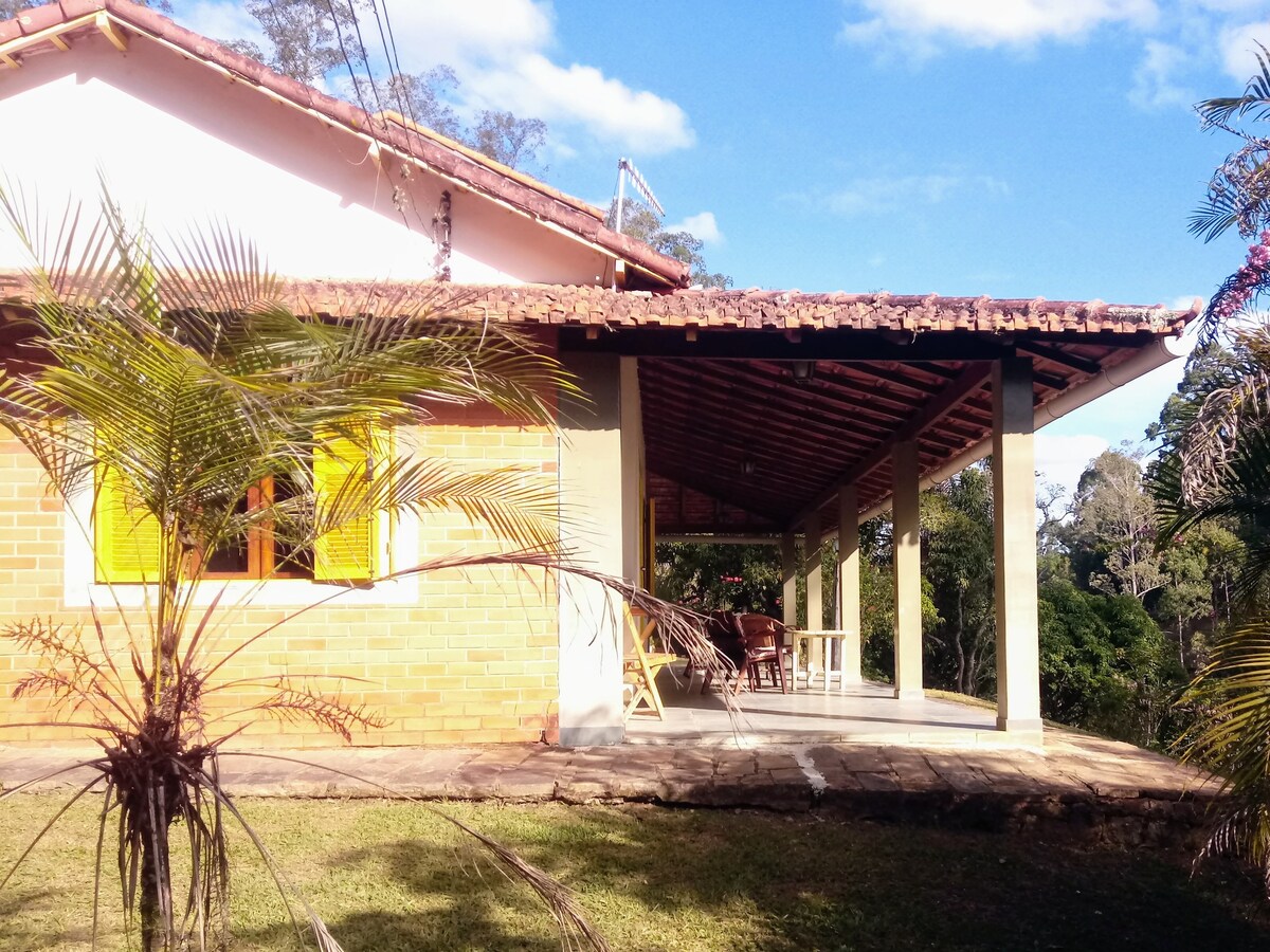 Amplia casa con balcón y un jardín privado con barbacoa, situada en un valle a 880 m de altitud rodeado de bosques, jardines y muy verde en Fazenda Alto da Conceição en su enorme sede de 50.000 m², los huéspedes pueden disfrutar de una zona común con una hermosa infraestructura de ocio compuesta por: piscina semiolímpica, sauna seca (horno de leña), lago, capilla, campos de fútbol, voleibol, senderos ecológicos y pista de cross country que se puede explorar a voluntad .....