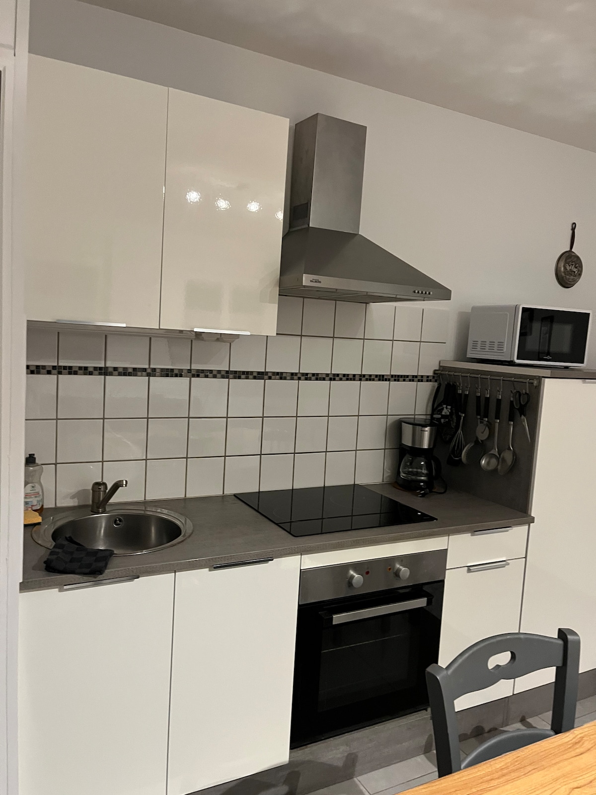 Residencia con aparcamiento (cerrado entre las 22:00 y las 6:00, acceso con código). Salón/cocina: sofá cama de 2 plazas, TV, wifi, horno eléctrico, placa de gas de la ciudad, hervidor, cafetera Senseo, microondas, vajilla para 4. Dormitorio 1: cama de 2 plazas 140x190 con colchón de calidad, armario. Cuarto de baño: ducha, lavabo, inodoro, lavadora. (El acceso al cuarto de baño se realiza a través del dormitorio 1). Habitación en altillo (bajo techo inclinado): cama individual. Acceso por una escalera empinada. Caja de llaves conectada.