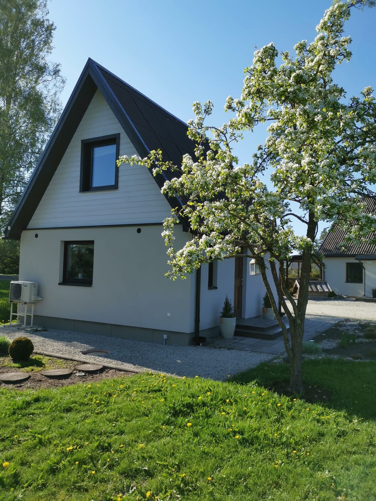 Lovely one-bedroom house with extraordinary privacy, huge garden and artsy design (made by me), yet located in the very heart of the village. Public transport stop and grocery store right across the street. Great resting place for couples, solo adventurers, families with kids and/or furry friends (pets). It is also good place to stay and take a daytrips to Saaremaa, Pärnu, Haapsalu or Tallinn. As I do live here sometimes it’s not hotel style, so don’t prepare for that.