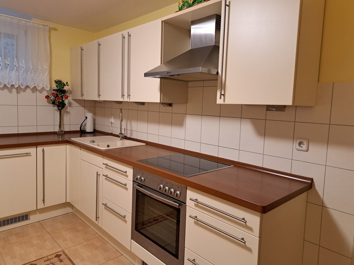 El amplio y luminoso apartamento de 100 m² con 4 habitaciones y un gran balcón ofrece todo lo necesario para una estancia confortable. Hay dos plazas de aparcamiento justo delante de la entrada. Todas las habitaciones son luminosas y están amuebladas de forma moderna. Todo el apartamento es muy luminoso, tranquilo y es ideal para descansar o trabajar. El baño luminoso y acogedor con ducha está equipado con toallas, gel de ducha y secador de pelo. Además, hay otro inodoro separado.