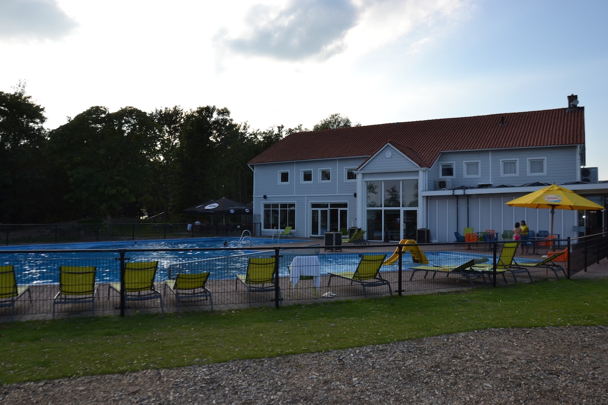 Huisje 'Chalet Badzicht' bij het zwembad en manege