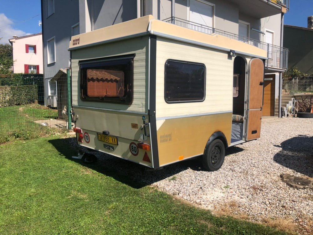 Minicaravana en jardín privado.