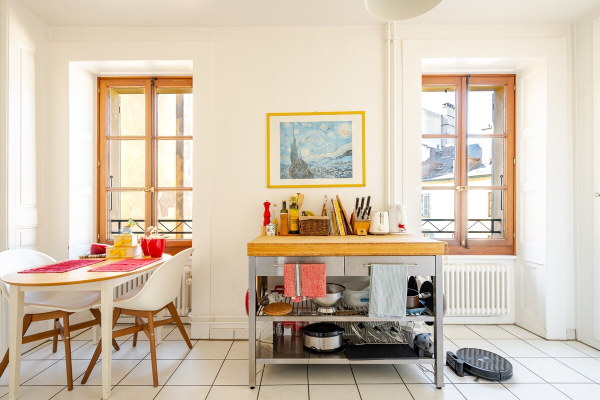 Este lugar especial con mucha luz natural ofrece a cada huésped la experiencia única de visitar Ginebra. -35 minutos del aeropuerto. - A 10 minutos del centro histórico. - A 15 minutos de Jet d'eau. El departamento tiene una ubicación ideal para visitar Ginebra a pie. En la zona hay restaurantes con todo tipo de detalles, heladerías, supermercados y a 5 minutos del apartamento hay mercados de productos locales en Plainepalais. El distrito de Carouge, una joya de Ginebra, está a 10 minutos a pie.