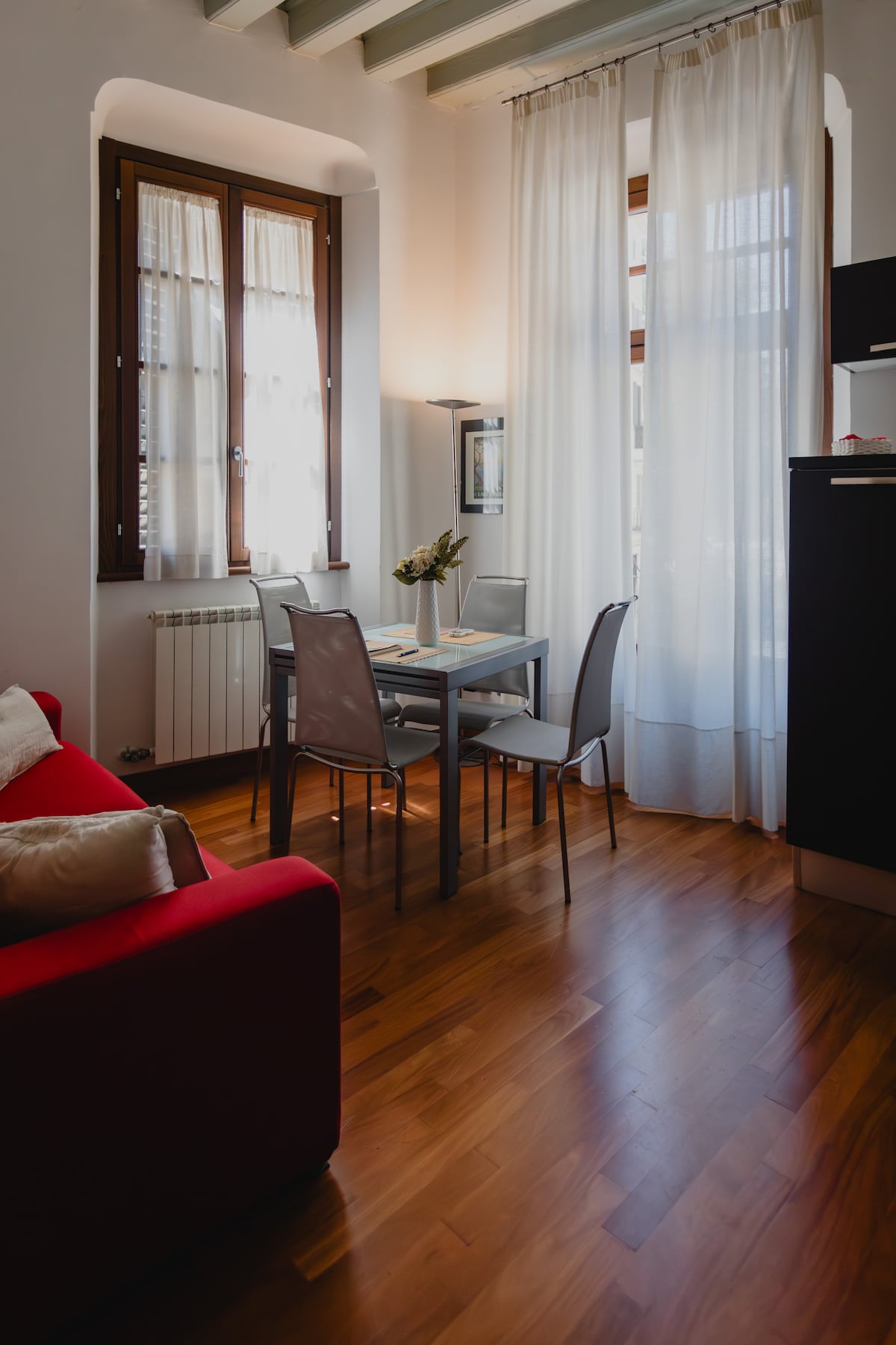Si quieres encontrar en el mismo espacio lo mejor que ofrece la artesanía italiana, lo encontrarás aquí en DOMUS AUREA. En el corazón del casco antiguo de Verona, encontrarás impresionantes techos renacentistas, muebles florentinos, lujosas lámparas de araña de cristal de Murano, preciosas vistas desde el balcón y mucho más. Estás a un tiro de piedra de la casa de Julieta, Piazza Erbe, la lujosa Via Mazzini. Por último, pero no por ello menos importante, hay una botella de excelente vino italiano para recibirte. ¡¡МЫ ГОВОРИМ ПО РУССКИ!!
