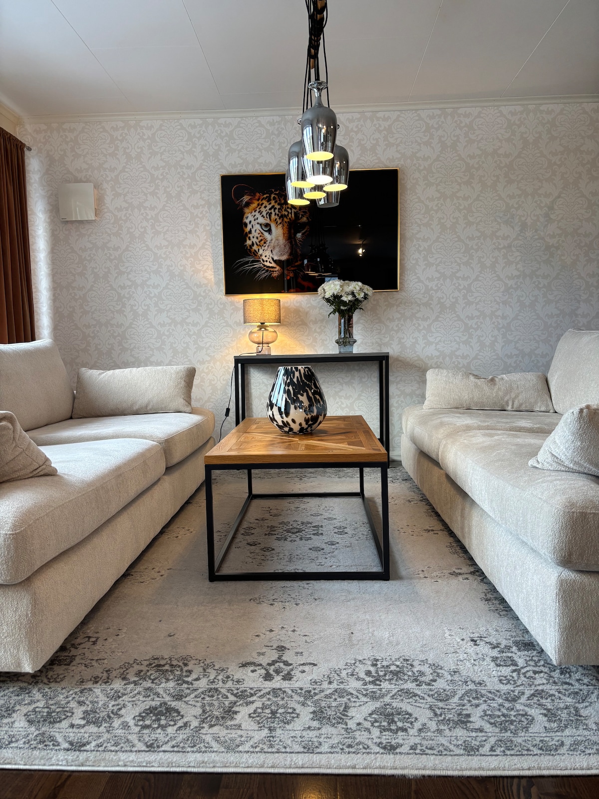Lys og moderne leilighet i 1. etasje av en tomannsbolig. Leiligheten har to soverom, en med dobbeltseng og en med enkeltseng, eller tilgang til 120 cm luftmadrass, stue- og kjøkkenløsning med romslig sofa, peisovn og fullt utstyrt kjøkken. Store vinduer slipper inn mye dagslys, og lune detaljer skaper en varm og avslappende atmosfære – perfekt for både koselige kvelder og hyggelige måltider. I nærområdet finner du flotte turstier og skispor, samt Raufoss Badeland og Lekeland for hele familien.