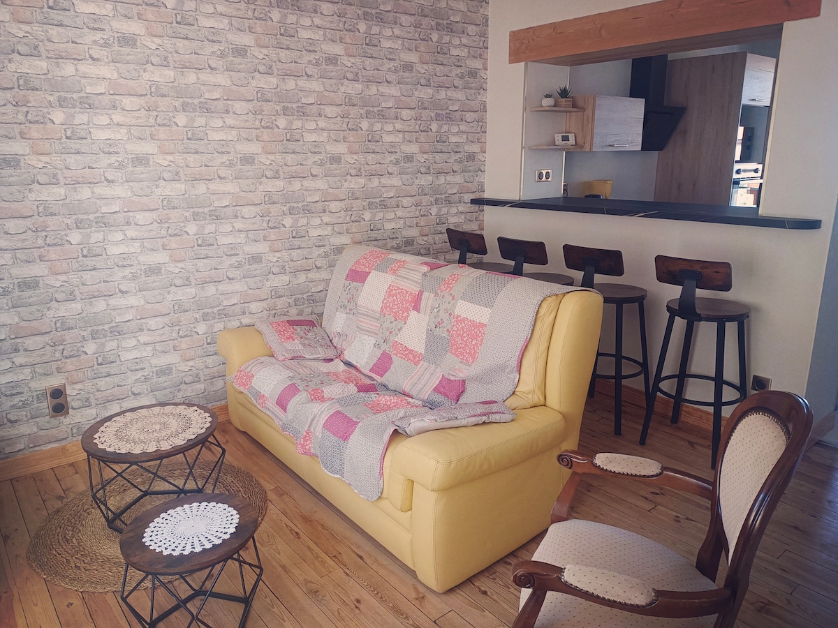 Este alojamiento familiar está cerca de todos los servicios ( estación de tren y tiendas) Completamente reformada, esta encantadora casa es cálida. Cuenta con una amplia sala de estar con aire acondicionado con sofá cama para 5.ª y 6.ª persona, 2 dormitorios, un baño y un aseo separado. En el exterior, un pequeño patio para momentos de relajación. La ropa de cama y las toallas están incluidas en el alquiler. Es posible contratar un paquete de limpieza (30 €).