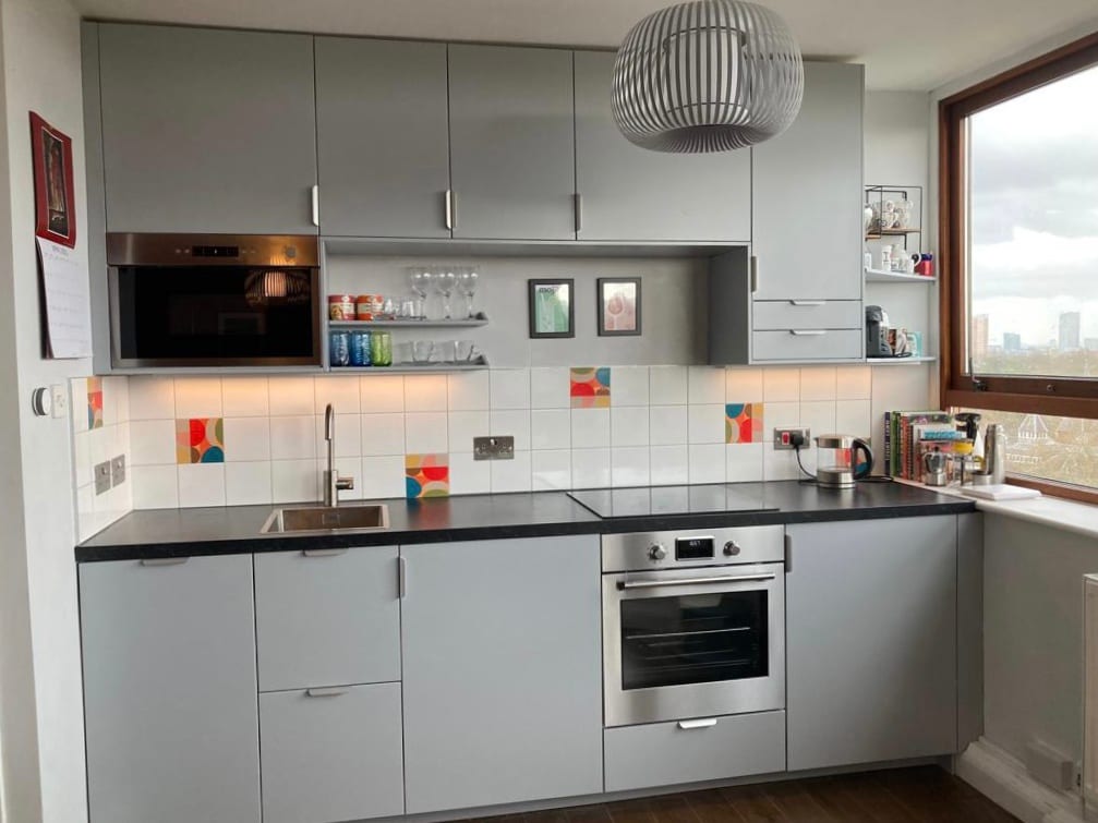 Spacious 2 double bedrooms located in a park by a canal, with a large sunny balcony and great views of Canary Wharf. Completely renovated in 2025. Only a few underground stops from Central London and a cycle ride or an underground stop from the Olympic Stadium and Westfield in Stratford. Parking nearby. Everything you need for young children provided. Great local pubs and restaurants. Local food shops 5-minute walk. Fully stocked kitchen. Bluetooth speaker and smart TV. High-speed internet.