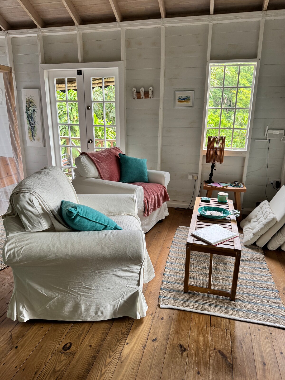 Coconut Cottage fue construida en 2013 por artesanos locales del pueblo de Toucari. La estructura es toda de madera con suelos de baldosas y muchas ventanas para la iluminación natural. ¡Te esperan impresionantes vistas al mar! Hay un corto paseo cuesta abajo hasta una playa encantadora, un restaurante local y un pintoresco pueblo de pescadores. ¡Hacer esnórquel, kayak y natación son solo algunas de las actividades que te esperan! Ubicada a 10 minutos de Portsmouth, donde hay tiendas y servicios @coconutcottagedominica