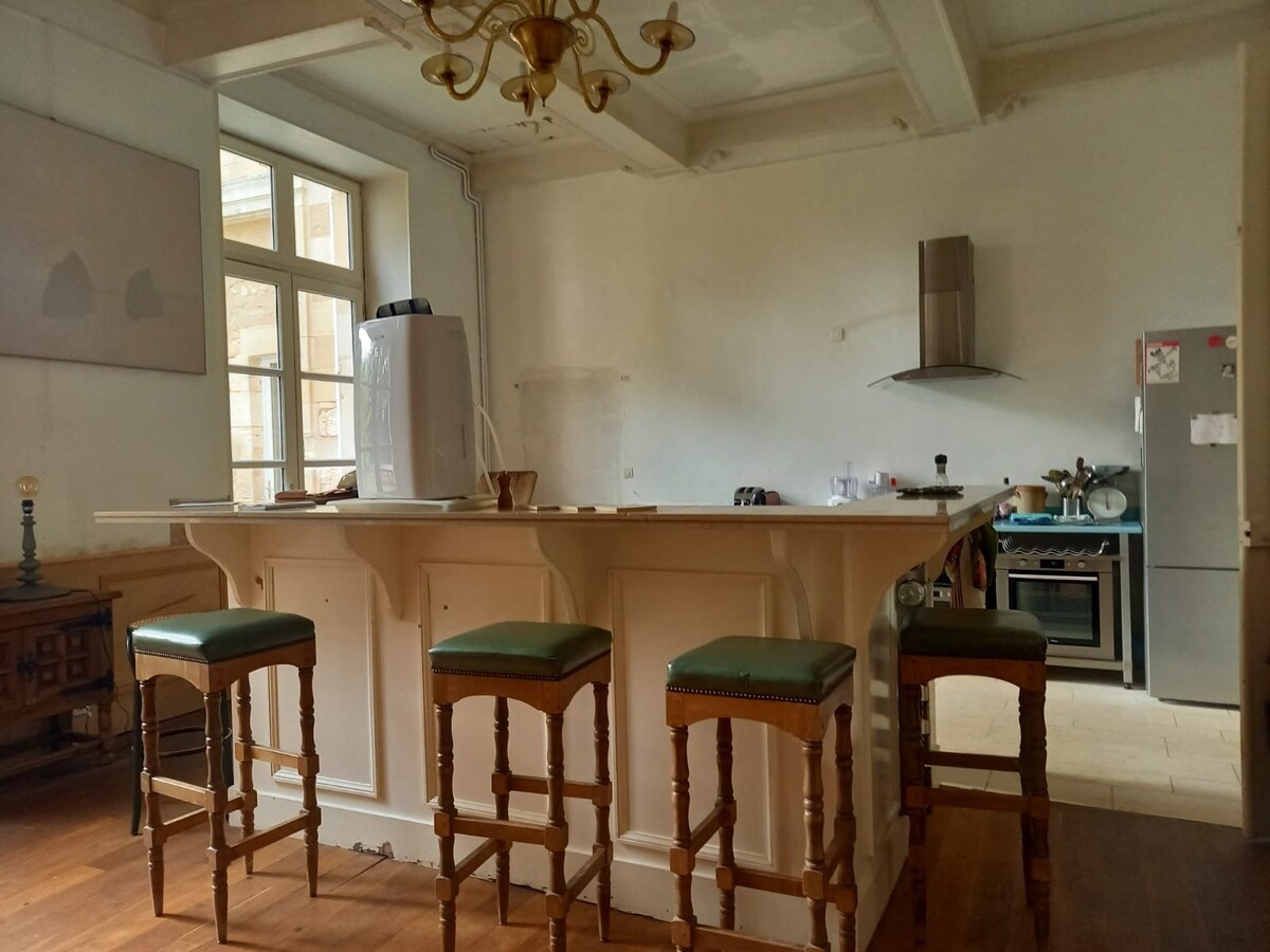 Magnífico apartamento 18 de 60 m2 en una mansión del siglo XVI, en pleno centro histórico de Poitiers, A 15 minutos del Futuroscope y del Golf de Saint Cyr. Maderas, murales, suelos de madera chimenea espejo y vidrieras de época: ¡el apartamento está protegido como parte del sector protegido con la sensación de vivir en un castillo! Facilidades: estacionamiento en la Residencia Wifi de muy buena calidad /Netflix Apartamento 18, residencia 16. Atención para 2 personas