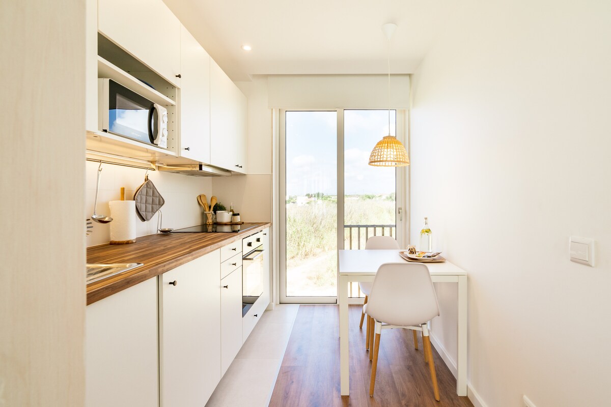 A freshly renovated two-bedroom apartment in the heart of Sagres. [One double bed & 2 singles, that can be joined for couples] Just a 10-15 minute walk to Praia da Mareta & Praia do Tonel beaches. Newly furnished with a relaxed surf-inspired feel, the apartment has a small private balcony & access to a beautiful communal pool & children's play area. Restaurants, cafés, the Intermarché supermarket, and the local farmers’ market (great for fresh produce) are all just around the corner.