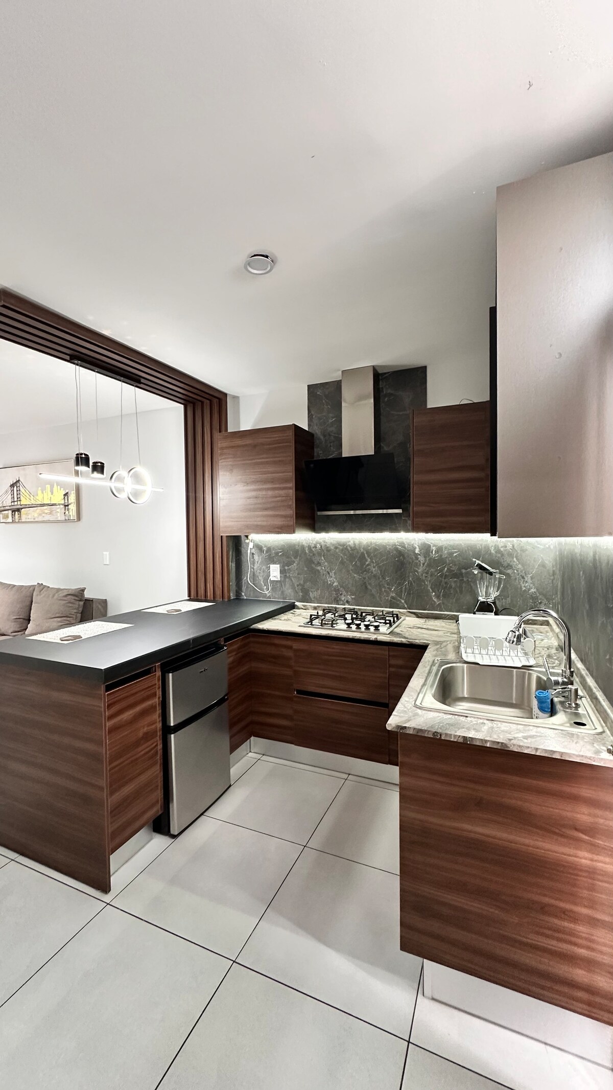 HERMOSO DEPARTAMENTO, AMPLIO, COMODO, SIN ESCALERAS. SOLO PARA AUTOS MEDIANOS. GRAN CLASE Y ESTILO TOTALMENTE EQUIPADO. CONSTA DE UNA AMPLIA RECAMARA CON ESPACIO PARA TRABAJAR EN TU COMPUTADORA, WIFI, PANTALLA, BAÑO COMPLETO PRIVADO Y UN AMPLIO VESTIDOR. SALA CON SOFA CAMA, COMEDOR Y COCINA EQUIPADA CON CAFETERA, TOSTADOR, LICUADORA ETC. 1 MEDIO BAÑO. ADEMAS DE UNA PEQUEÑA Y MUY AGRADABLE TERRAZA, Y COCHERA CON PORTON ELECTRICO PARA AUTO MEDIANO.