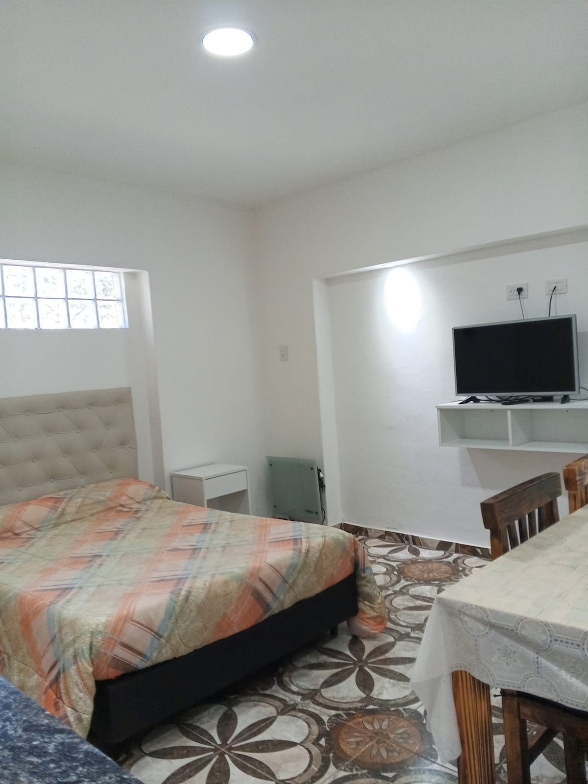 Departamento cómodo con cochera incluida. Ubicado a 900 mtrs del centro de la ciudad. Cuenta con 1 dormitorio amplio con 1 cama 2 plazas y 1 de una plaza, baño, cocina comedor y pequeño patio.