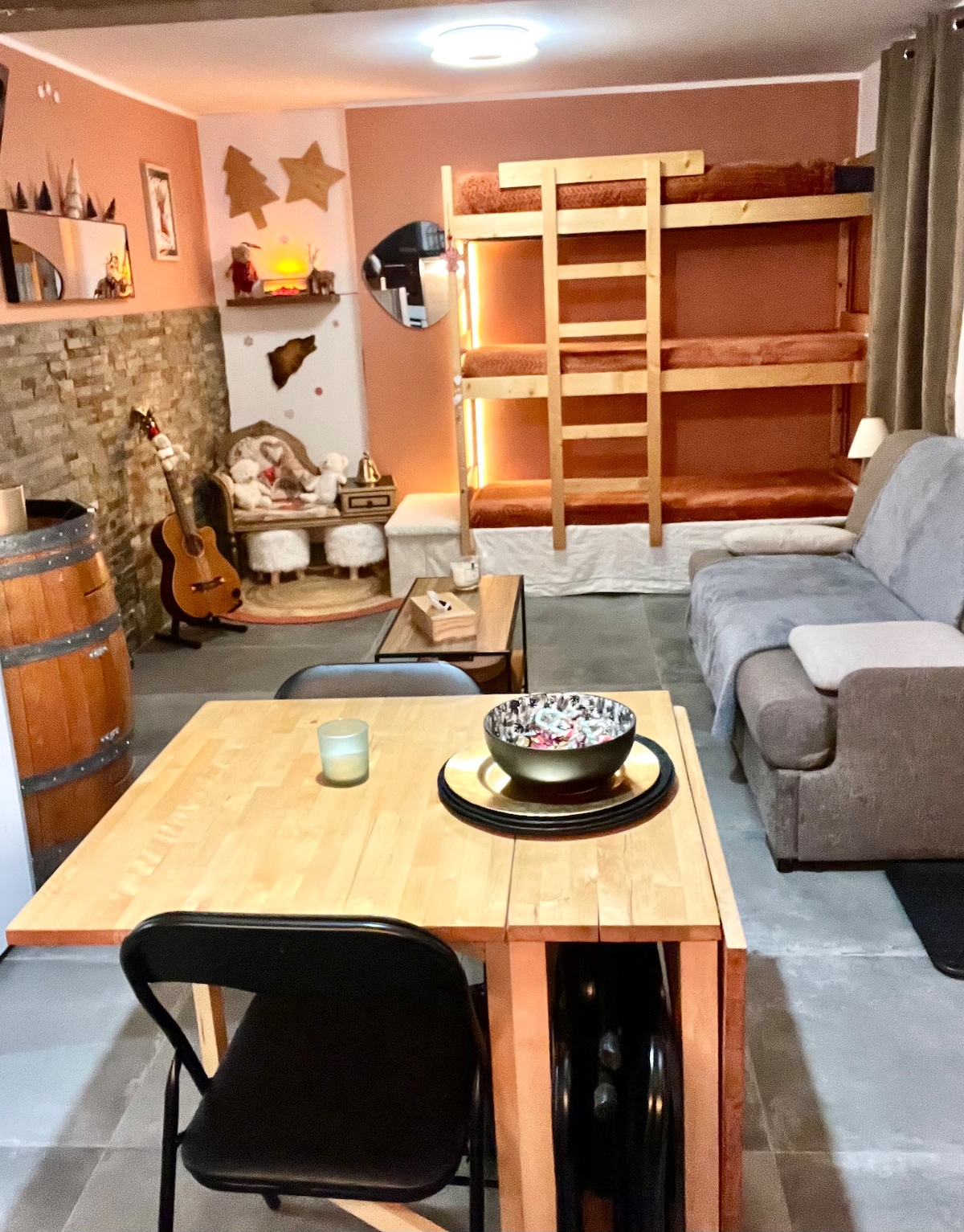 A 5 min des remontées mécanique , des pistes du Prorel à Briancon 🚗 mais à l’abri du tumulte de la station ! Venez découvrir ce magnifique studio entièrement pensé pour vous en rez-de-jardin,5 pers avec entrée indépendante, extérieur+ parking+local ski, luges. Cuisine équipée, canapé-lit+lits superposés, sdb/WC séparés. Calme et autonomie assurés. Bus en bas de la rue à 3 min vers centre ville, commerces à 2 min en voiture. Nous habitons sur place, discrets mais dispo si besoin ;)
