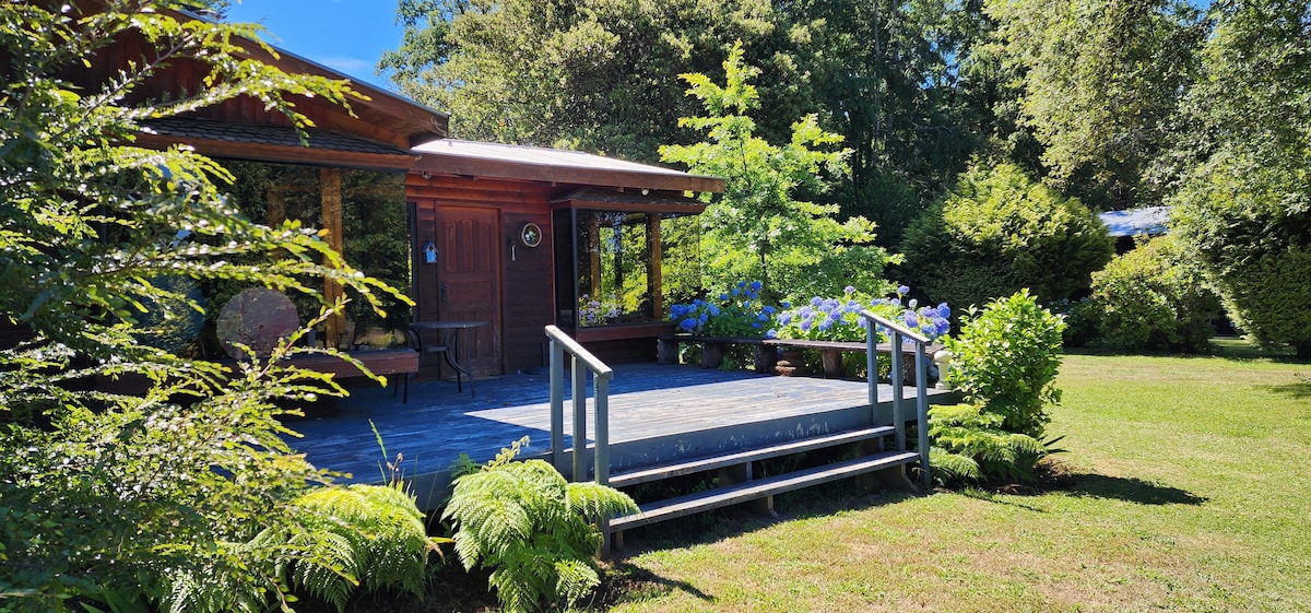 Jardin Trillenco: Hermosa Cabaña en el Bosque en el sector Lefún entre Villarrica y Pucón. Tiene una Maravillosa vista al Volcán Villarrica, rodeada de bosque nativo y aves. Todos los dias se escuchan Loicas y Chucaos. Full Equipada para que disfrutes tu estadía y puedas desconectarte y descansar. Por la propiedad pasa un Estero muy lindo. Te recomiendo hacer fotografías nocturnas del Volcán Villarrica al lado de la estufa a Leña con la vista panorámica qué ofrece nuestra cabaña.