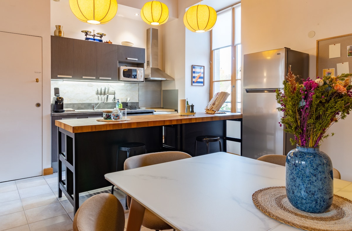 En el corazón de la ciudad de los duques de Borgoña, le invitamos a descubrir la suite de Bacchus. Esta antigua panadería y su bodega abovedada, que en su momento sirvió como taller para el artesano, le da la bienvenida ahora en un lujoso loft reformado para una estancia en la capital del vino y la gastronomía de Borgoña. Su céntrica ubicación en la ciudad, cerca de restaurantes, monumentos y transporte público, está dedicada al descanso y la relajación.