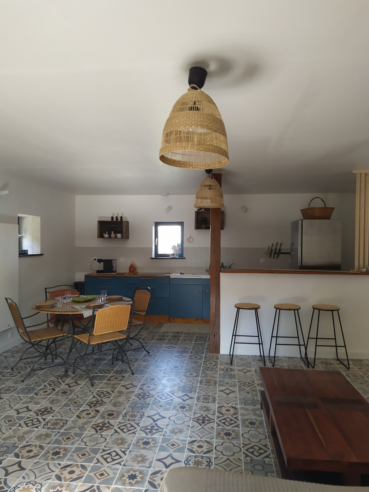 Bonita casa en el corazón del campo de Touraine. Es un lugar para que se reúna en pareja con un bebé y/o niño pequeño para disfrutar de la tranquilidad. Su alojamiento estará rodeado por un gran jardín arbolado, vallado con un aparcamiento privado y seguro. Cocina totalmente equipada, televisión, wifi. Habitación grande con cama eléctrica de 160, televisión, armario grande, cuna, cama infantil. Cuarto de baño e inodoro. Salón jardín, mesa bar exterior, plancha...