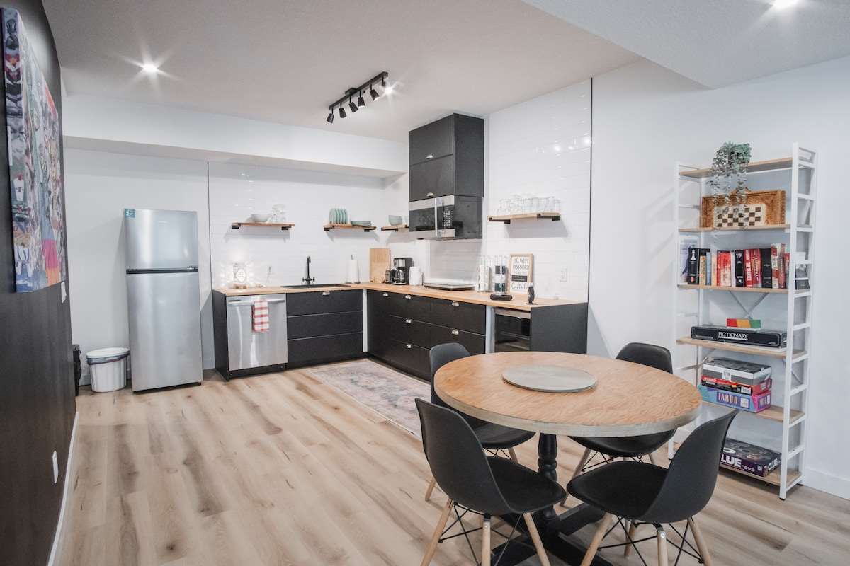 Our newly-renovated and romantic NYC loft-inspired basement suite offers over 1000 square feet of luxurious living space. With its high ceilings, floor-to-ceiling glass walls and French doors, and cozy in-floor heating, you'll feel like you're in a real loft. The high-end kitchen and bathroom add a touch of sophistication, and the 90s Simpsons arcade game provides hours of entertainment. Book your stay with us and experience the luxury and comfort of our suite.