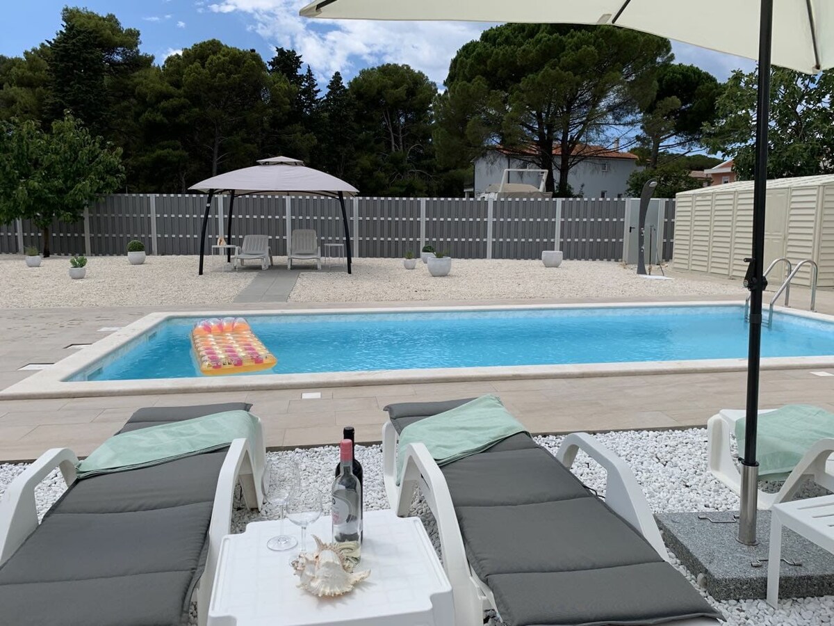 En alquiler hay un apartamento nuevo y moderno en Vinkuran (Pula - 4 km) para 4-5 personas en la planta baja, dividido en dos dormitorios (1 cama doble y 2 camas individuales), un baño con ducha, inodoro adicional y cocina-sala que ofrece posibilidad adicional para dormir en el sofá para la quinta persona. Todas las habitaciones tienen aire acondicionado y TV. En el área exterior para uso privado hay piscina, ducha al aire libre, gran barbacoa, tumbonas, acogedora terraza y cocina al aire libre.