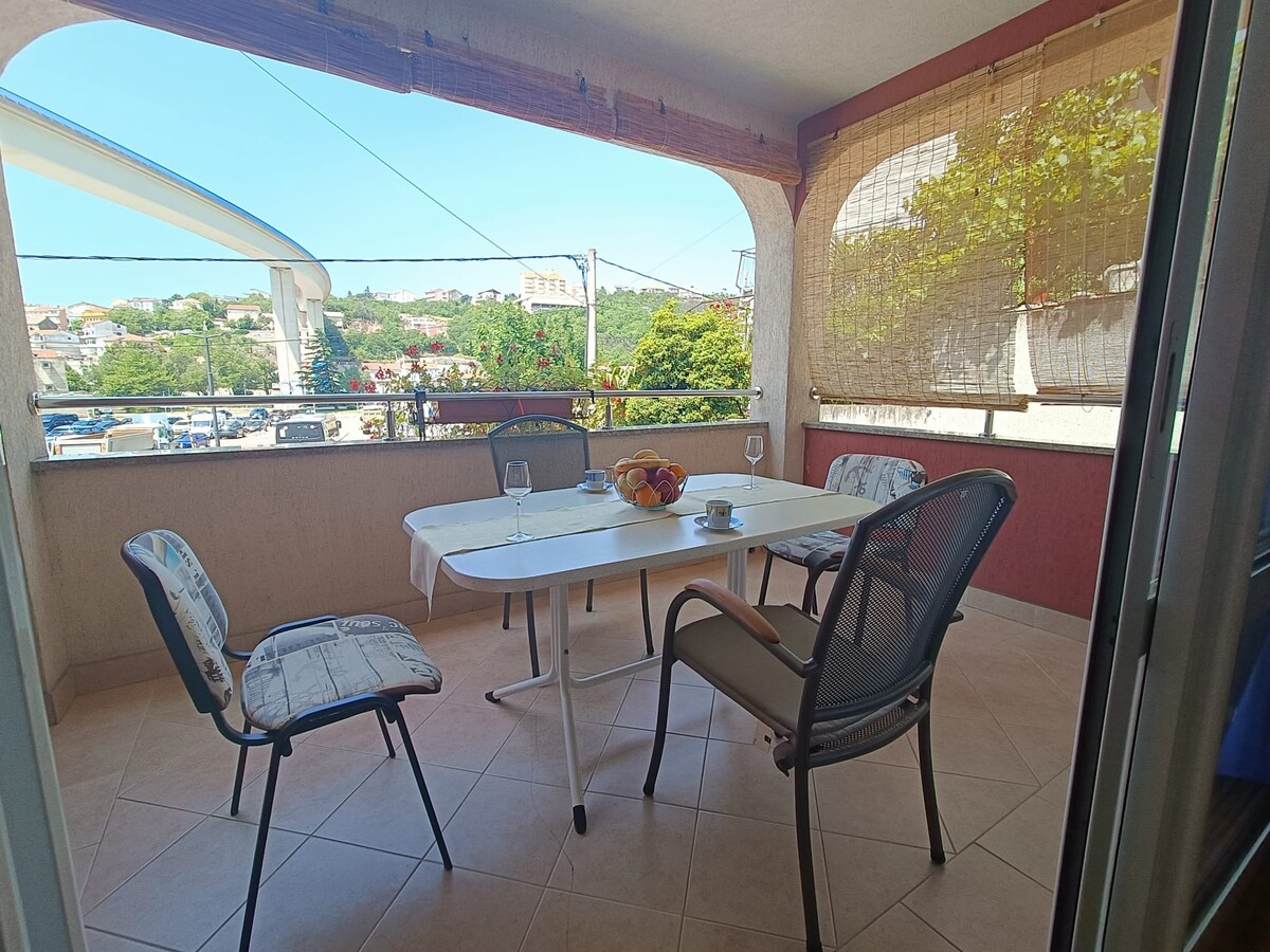 Apartamento en Crikvenica, con hermosas vistas al mar, a 200 m de las primeras playas, a 50 m de la primera tienda y a 500 m de la tienda Špar. El apartamento es ideal para parejas o parejas con un niño. El apartamento cuenta con aparcamiento seguro y privado, aire acondicionado y derecho a utilizar la parrilla y la ducha exterior. El apartamento tiene un balcón con hermosas vistas al mar. El centro de Crikvenica está a 3 minutos en coche o a 20 minutos a pie. El centro más cercano, Selce, está a 10 minutos a pie o 2 minutos en coche.