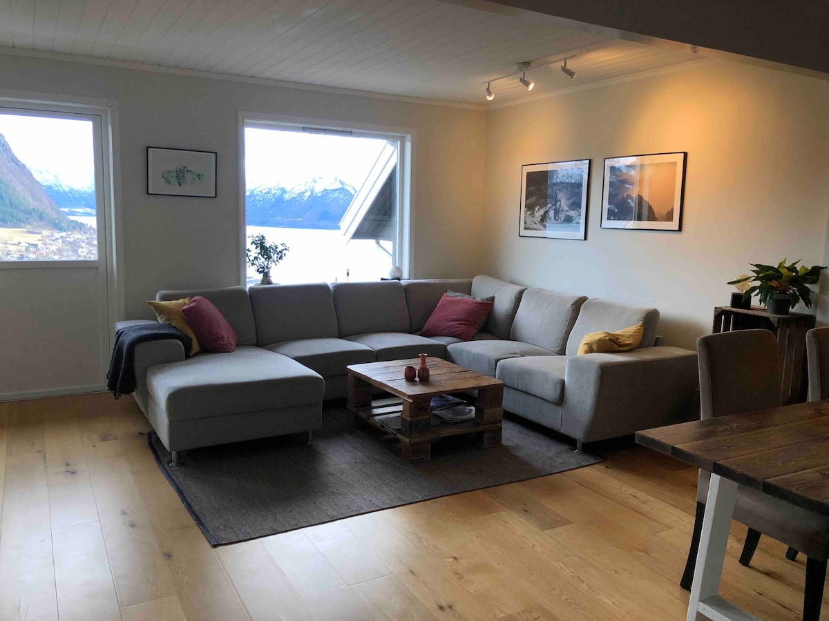 Acogedor apartamento en el centro de Ørsta. Está en el tercer piso con excelentes vistas de Saudehornet, Vallahornet y Nivane. Hay un ascensor en el edificio. Está muy céntrico, a poca distancia de restaurantes, cafés, bares, tiendas de comestibles, peluquería y banco. El centro comercial Alti está a 100 metros de distancia. El puerto deportivo está a 5 minutos a pie. Ørsta es conocido por sus grandes montañas que son adecuadas tanto para hacer senderismo como para esquiar. Estacionamiento gratuito. La estación de autobuses está a 5 minutos. El aeropuerto de Ørsta/Volda está a 3 km.