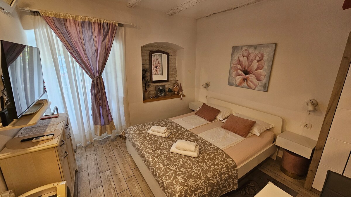 Acogedora habitación doble con baño privado y balcón seawiev situado en el centro de Opatija. Es nuevo renovado, aire acondicionado con poca nevera, wifi y televisión. Cerca del transporte público, supermercado, mercado verde, oficina de correos, bancos, restaurantes y bares. A 3 minutos a pie de la playa. Ubicado en el segundo piso, villa antigua, sin ascensor. Hermoso paseo junto al mar de unos 10 km de largo.