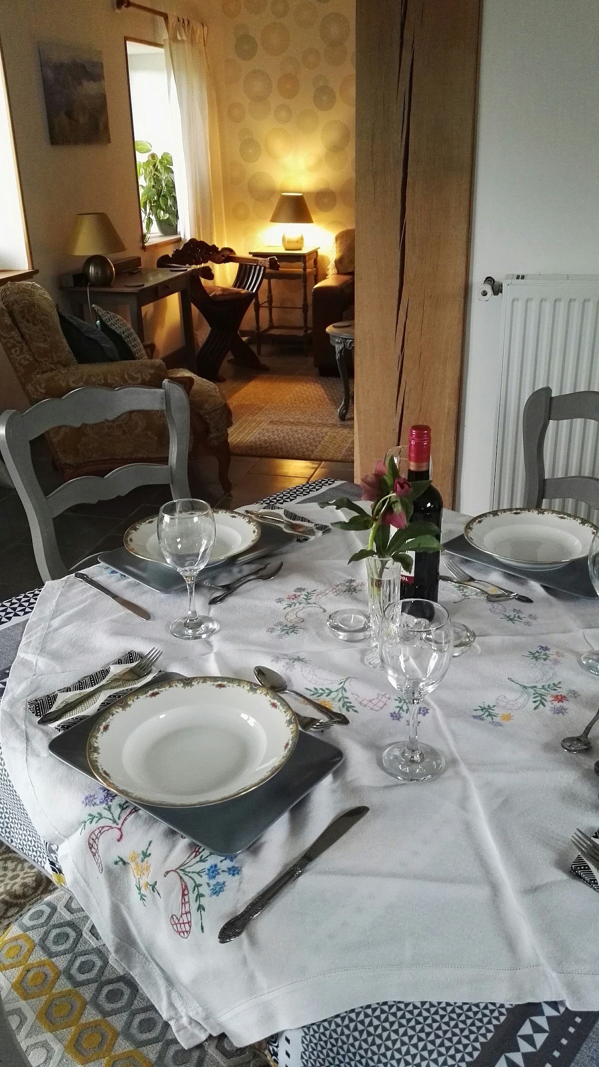 Deze sfeervolle, ruime accommodatie (65m2) is perfect voor een fijne overnachting. De gîte is voorzien van alle benodigde voorzieningen. Buiten kunt u genieten op het zonneterras, met uitzicht over het weiland waar de paarden grazen. De gîte ligt landelijk gelegen, maar op korte afstand van restaurant, supermarkt en de snelweg, A71 (10 minuten). Als u wilt kunt u gebruik maken van onze goed gevulde ontbijtmand. Reserveren is noodzakelijk. Kosten €12,50 per persoon.