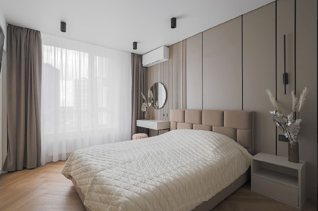 El interior del apartamento está hecho en un estilo escandinavo ligero con elementos de la Provenza. Las ventanas del área de la cocina tienen una decoración mínima en forma de rodillos cómodos, en el dormitorio hay cortinas hechas de luz, material fluido que se desplaza hacia el lateral de la propia ventana para permitir la mayor cantidad de luz solar posible. Hay un gran supermercado Novus y McDonald 's justo enfrente de la casa. El primer megamall ucraniano está a 10 minutos — LavinaMall