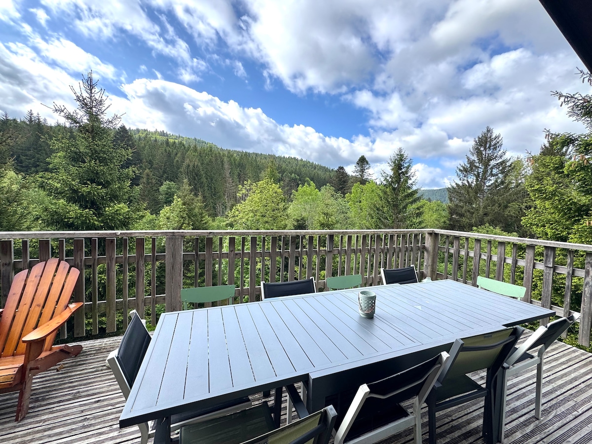 Mon chalet jouit d'une vue exceptionnelle sur les vallées vosgiennes depuis une très grande terrasse. De nombreuses activités adaptées aux familles sont proposées aux alentours. Vous apprécierez mon logement pour la vue, l'emplacement et les espaces extérieurs. Le chalet est parfait pour les couples, les familles (avec enfants) et les compagnons à quatre pattes. NOUVEAU : Service de location de VTT électrique. Deux VTT à assistance électrique sont à votre disposition au chalet.