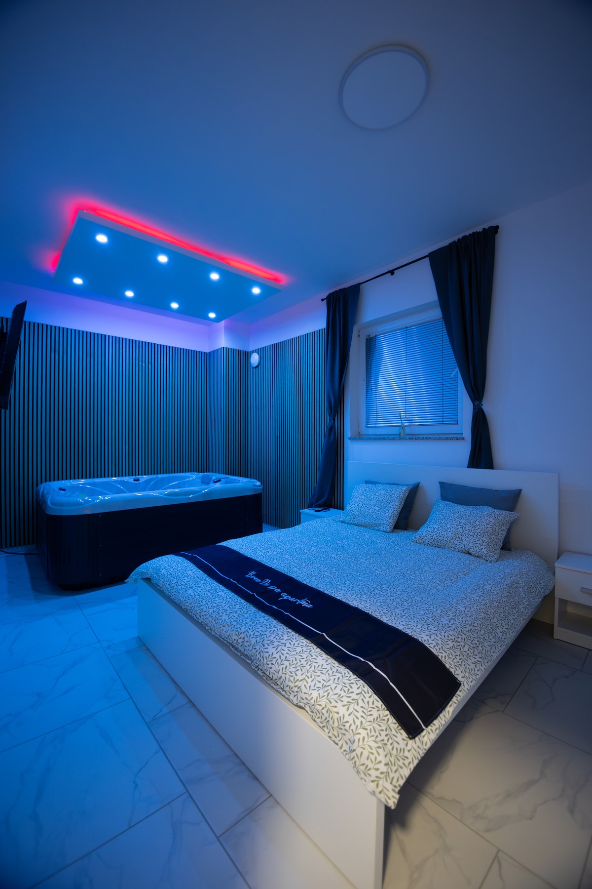 Luxury Apartment Brendi is a stylish 60 m² apartment designed for up to 4 guests, featuring a comfortable double bed and a sofa bed. The apartment offers a private terrace, on-site parking, and a relaxing jacuzzi—perfect for unwinding after a day out. Ideal for couples seeking a peaceful getaway or families looking for a comfortable stay with added privacy and wellness touches.sebno bivališče ima svoj edinstven slog.