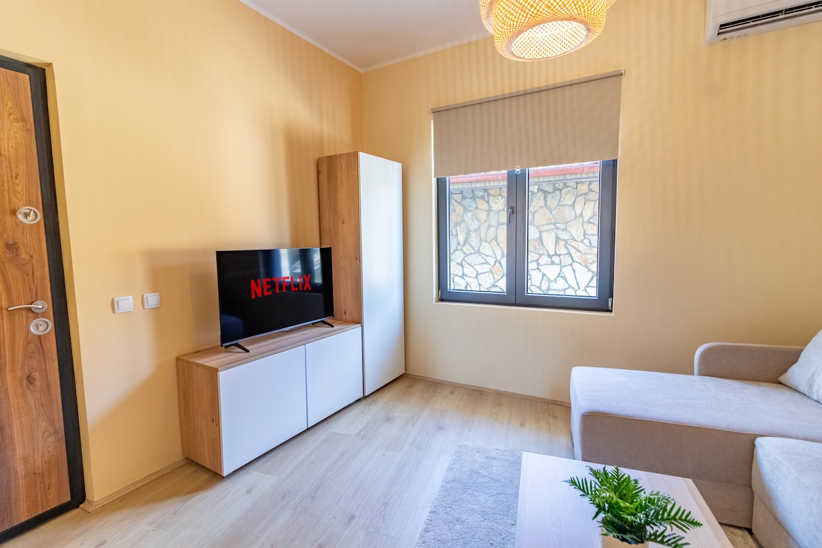 «Tramonto» es un apartamento de dos dormitorios completamente nuevo y céntrico, en la misma orilla del lago Srebrno Jezero. Cuenta con una cama doble francesa, sofá retráctil, cocina completa equipada con nevera, placa eléctrica, hervidor de agua y todos los accesorios relacionados, baño, armario y una terraza con vistas directas al lago y su paseo central. La playa principal está justo enfrente del edificio, con un minimercado, puesto de comida y el famoso club «Beach Bar», todo a 30 metros de la entrada. ¡Aparcamiento gratuito también!