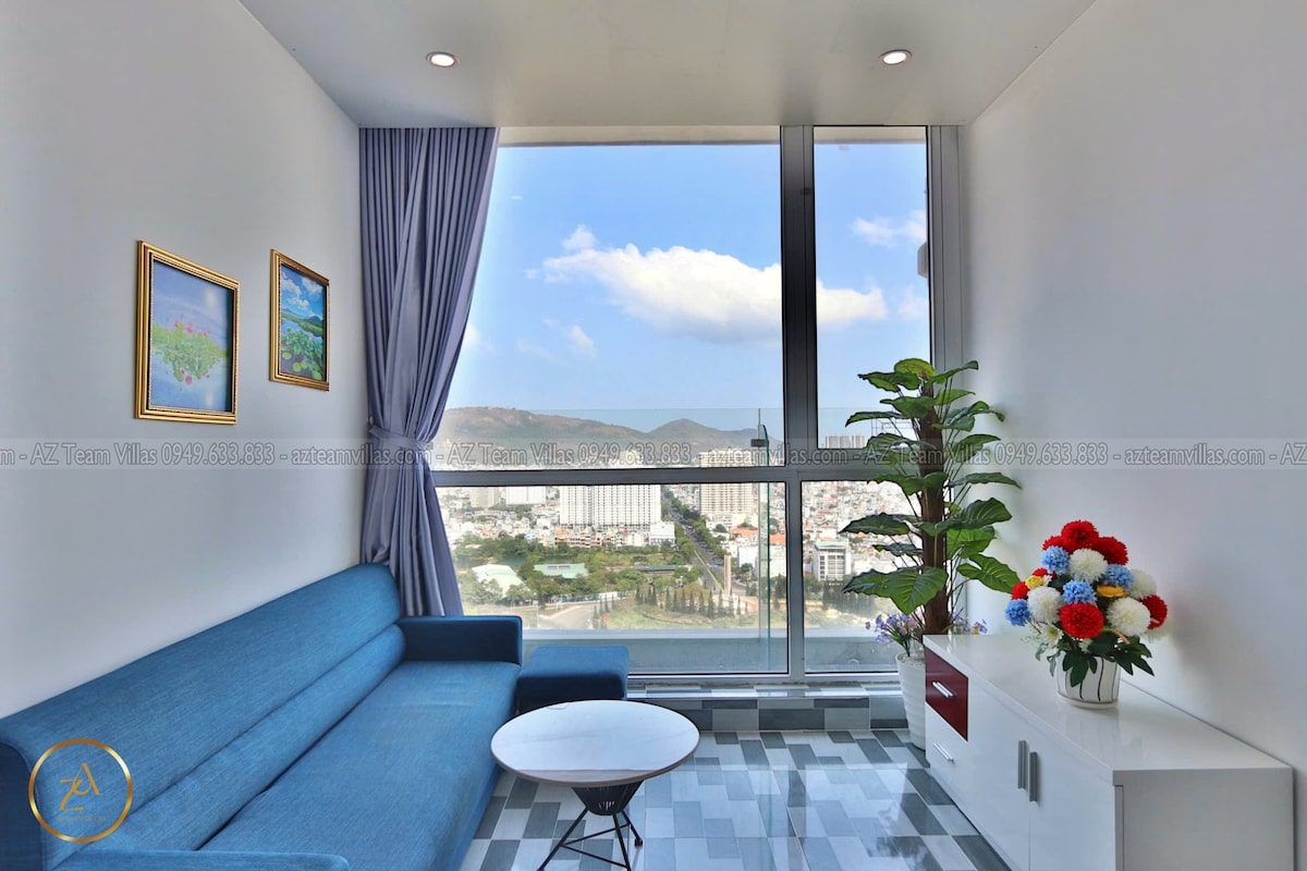 Mia Home se encuentra en el piso 35 de The Song Building, a 1 piso de la piscina en la azotea. El apartamento está diseñado en estilo vintage, romántico y acogedor, más adecuado para parejas o grupos de amigos que aman el ambiente romántico pero que aún quieran un poco de comodidad moderna. Servicios gratuitos que puedes disfrutar durante tu estadía: - Piscina Infinity Rooftop (cerca el lunes). - Sauna y gimnasio. - Parque acuático: piscina para niños (cierra el jueves). - A 5 minutos de la playa y a 5 minutos del supermercado más cercano.