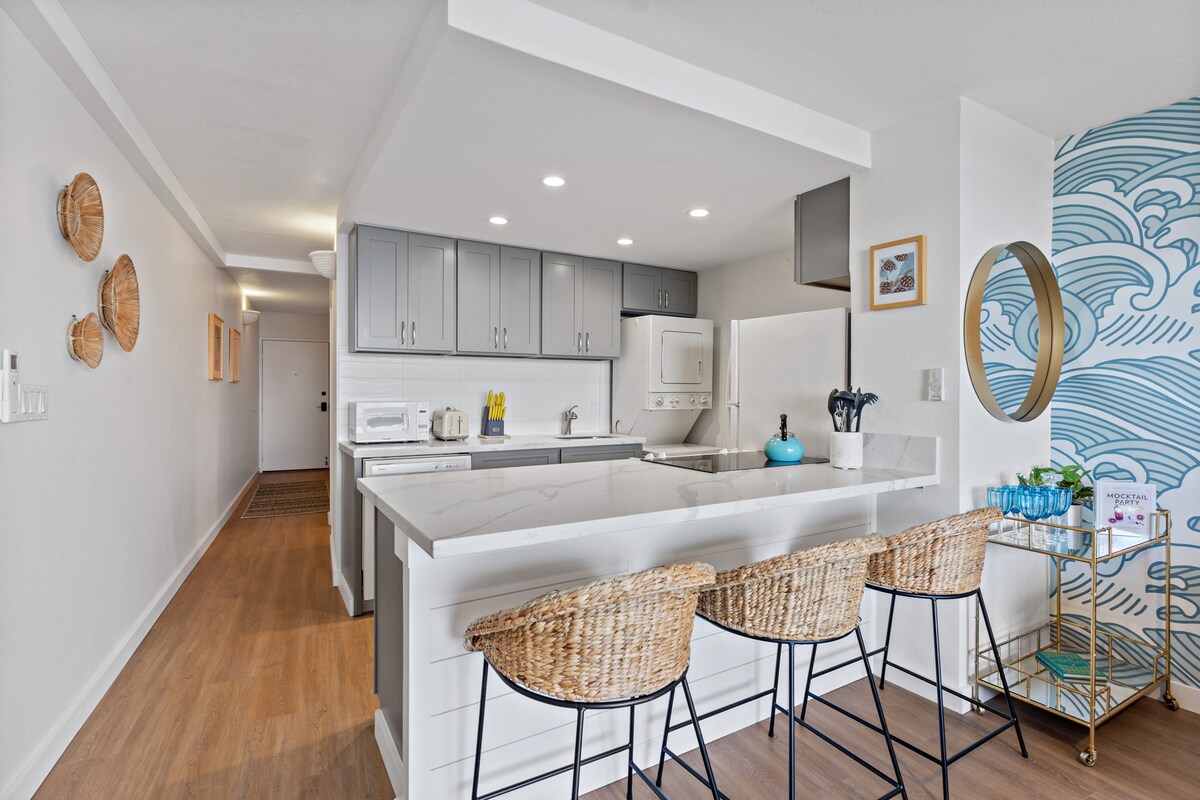 ¡Bienvenido a una cómoda base de aventuras en Maui que es acogedora, cómoda y moderna! Este condominio de vacaciones Premier en la ciudad portuaria conocida como Maalaea Village se encuentra a solo 20 minutos del aeropuerto de Kahului. Island Sands, un centro vacacional donde podrás disfrutar de una refrescante piscina y barbacoa mientras contemplas impresionantes vistas al mar y a la montaña. ¡Tu paraíso tropical incluye oportunidades para ver tortugas en una pequeña playa, a pasos del apartamento! ¡Esta escapada realmente ofrece una estancia inolvidable!