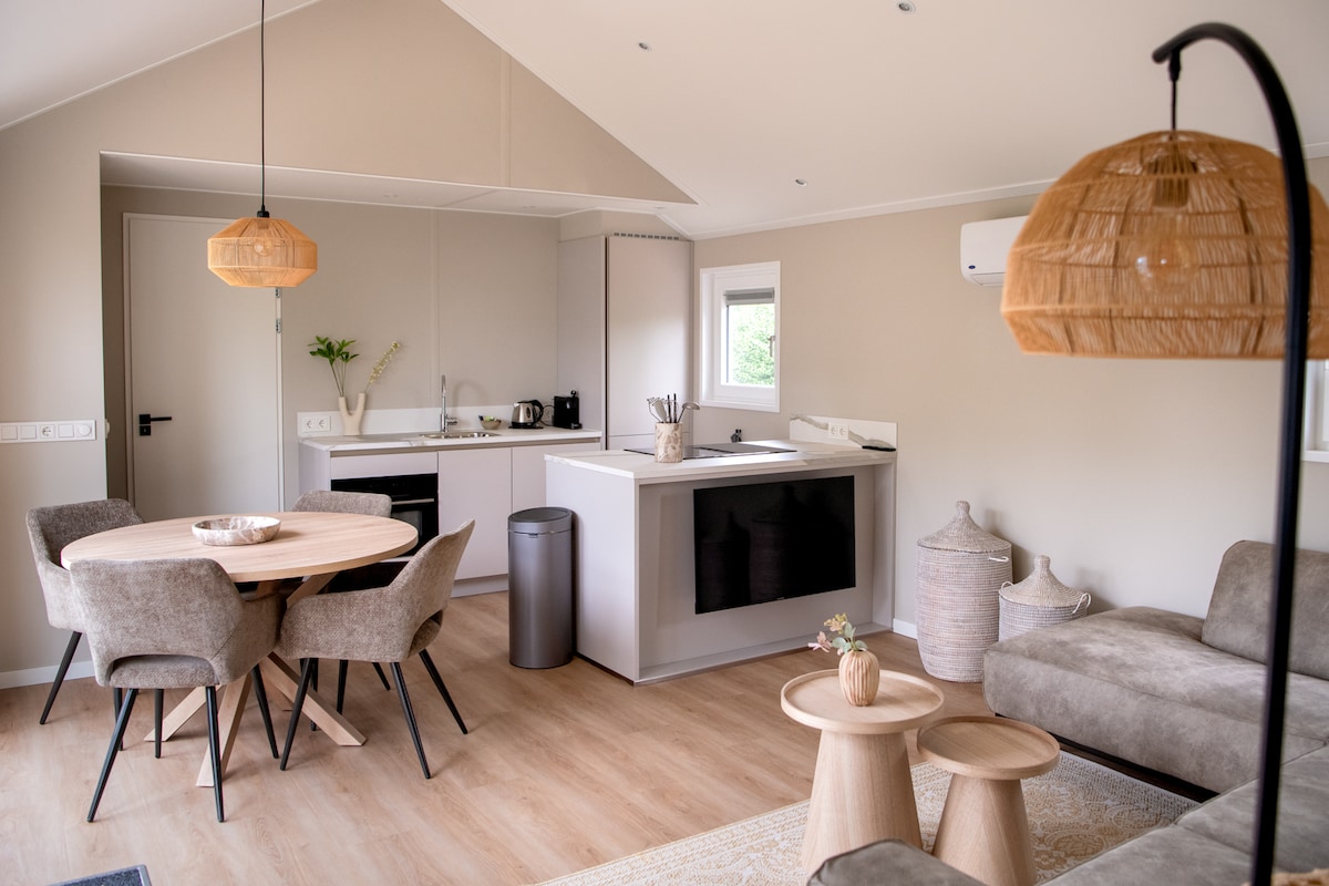 The chalet is located on the sunny peninsula of Walcheren. Situated in a quiet location, it offers the perfect setting for a relaxing stay. It features a spacious living room, an integrated fully equipped kitchen with a dining area, one bedroom, a dressing room, and a bathroom. The chalet is designed for 2 guests. A generous covered terrace and a garden invite you to unwind. Pets are not allowed. The property includes a bicycle shed and a private parking space.