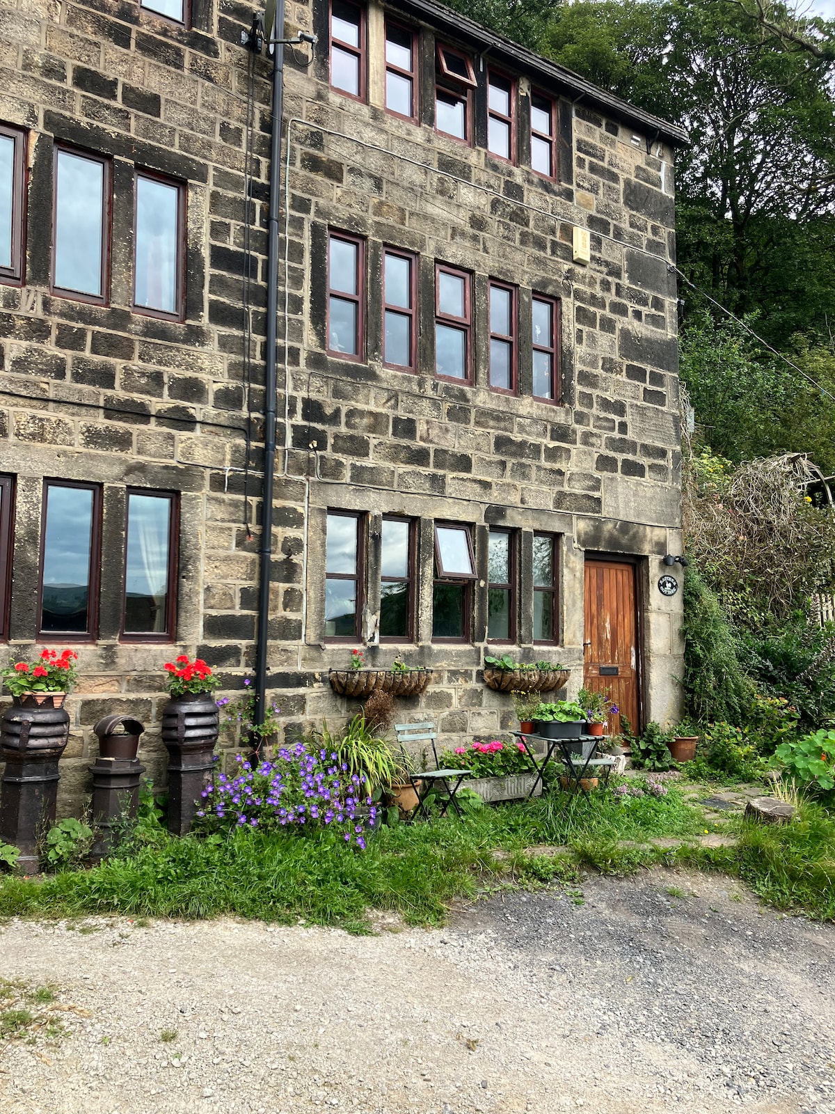 "Nuestra pequeña casa adosada junto al río cuenta con una vista idílica del río Calder y el canal de Rochdale y hacia los lados boscosos del valle. Construida en 1860 para los trabajadores del molino de algodón cercano, esta casa tiene muchas características originales y de época. Ya sea que estés cocinando en la cocina, relajándote frente a la estufa de leña, acostado en la cama o lujoso en el hermoso baño, hay una vista impresionante que se puede ver desde todas las ventanas. Si tienes suerte, es posible que veas una nutria o un visón nadando cerca.