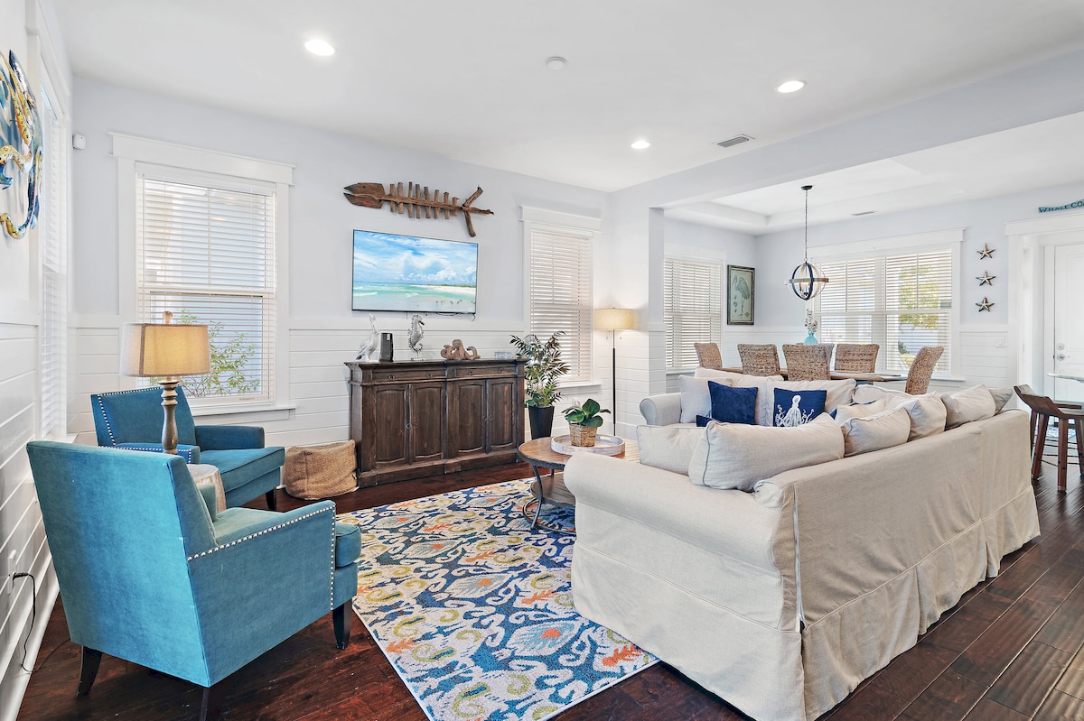 ¡Envíanos un mensaje para obtener el mejor precio! Disfruta de esta nueva casa de 5 dormitorios y 3 baños entre Panama City Beach y Destin, a pocos minutos de Seaside y Santa Rosa Beach. Ubicado en un barrio tranquilo y familiar, cuenta con una piscina comunitaria, un patio cubierto con vistas al estanque y admite mascotas. Con fácil acceso a 30A, este moderno refugio es la base perfecta para explorar la impresionante Costa Esmeralda de Florida.