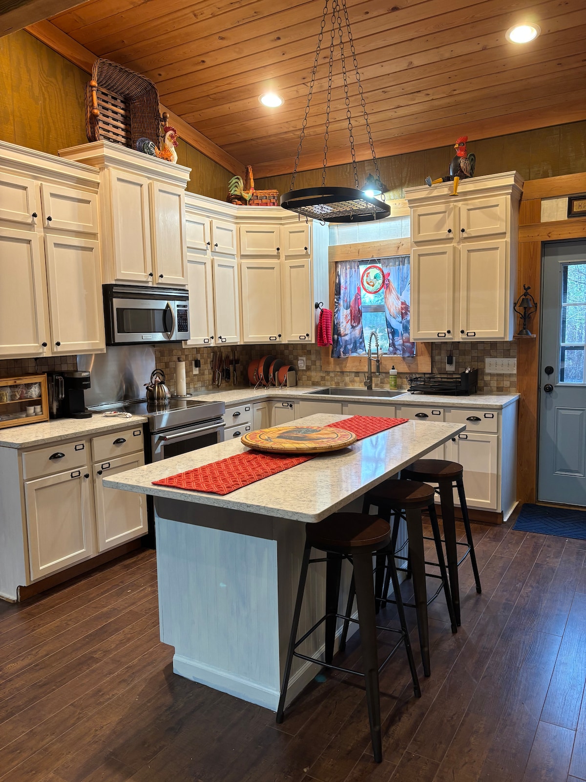 Unwind at this peaceful, one-of-a-kind retreat. Tucked among towering pines, this cabin offers the perfect balance of seclusion and convenience. Set on 40 acres, it sits ideally between three towns. Inside, cozy up by the fireplace, get lost in a book in the library or challenge friends to a board game in the loft. If you prefer the outdoors, cast a line in the pond, relax in the gazebo, or wander through the scenic woods. Whether you seek tranquility or adventure, the possibilities are endless.