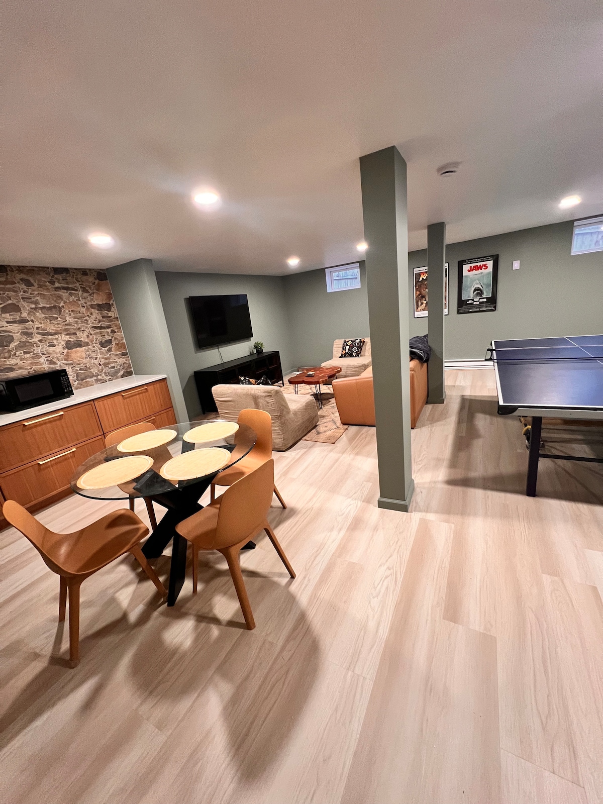 Step into the spacious and entertaining 3BR 2Bath retreat close to the enchanting town of East Stroudsburg. Enjoy the lovely views from the tranquil backyard and wraparound deck, have fun in the game room, and explore exciting Poconos attractions and natural landmarks from this fantastic family gem. ✔ 3 Comfortable Bedrooms ✔ Open Design Living ✔ Full Kitchen ✔ Pool/Ping-Pong Table ✔ Wraparound Deck ✔ Backyard (BBQ, Fire Pit, Lawn) ✔ Smart TVs ✔ High-Speed Wi-Fi ✔ Free Parking See more below!