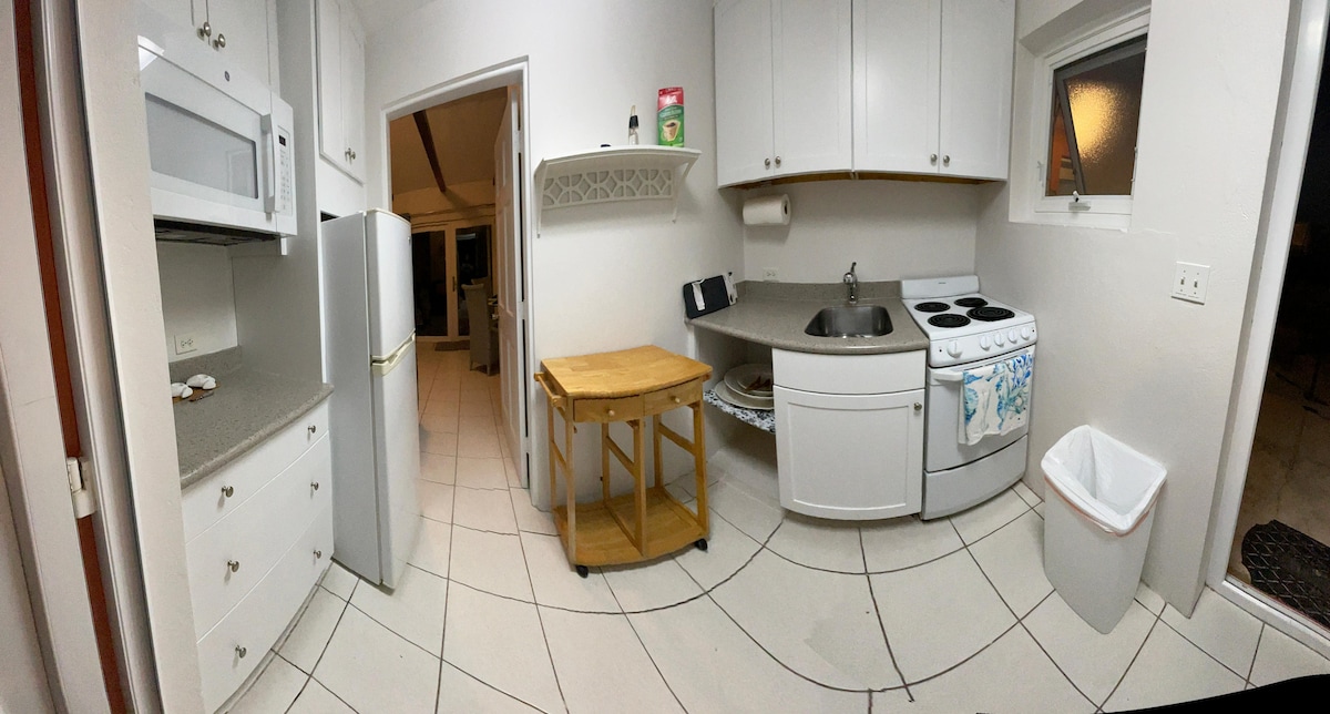 Este gran apartamento estudio está a solo 15 minutos de la ciudad de Hamilton. Ofrece el espacio perfecto para una pareja o una familia pequeña. Incluye una cama tamaño queen y dos sofás que se convierten en camas individuales, ideales para tus pequeños. Incluye todos los servicios de un alojamiento. Estarás muy cerca de algunas de las mejores playas de las Bermudas, senderos para caminar, campos de golf, restaurantes, tiendas de comestibles y farmacias. Hay un cargador para vehículos eléctricos en el lugar y una parada de autobús en la parte inferior de la unidad.