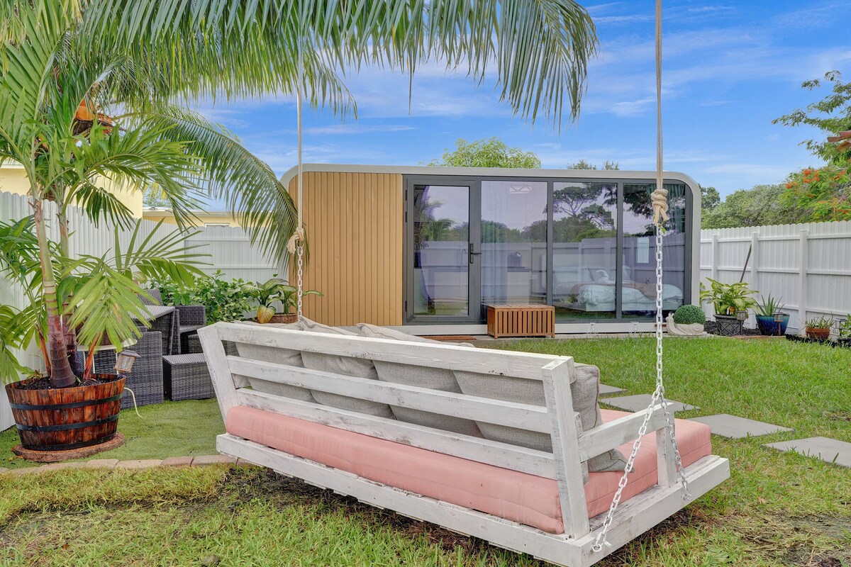 Casa cápsula de escape en Fort Lauderdale, perfecta para cualquier persona que busque relajarse, ¡especialmente para parejas! Disfruta de un jacuzzi privado y un espacioso patio trasero verde, bellamente iluminado por la noche para un ambiente tranquilo y acogedor. A solo 10 minutos del aeropuerto FLL, I-95, a 15 minutos del Hard Rock Casino y a 20 de Las Olas Boulevard. Una estancia elegante y serena para aquellos que quieren disfrutar de una experiencia verdaderamente especial.