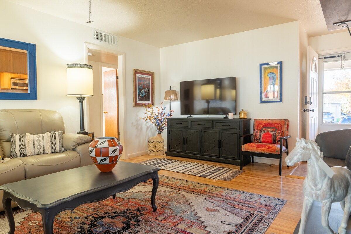 Bluffview Casita is a clean, cozy and conveniently located two bedroom and one bathroom duplex on the Westside of Farmington. You'll be close to the newly revitalized downtown area, airport, Connie Mack fields, as well as several local restaurants. Farmington is a great central location to visit the Bisti Badlands, Choke Cherry Canyon, Navajo Lake, Chaco Canyon, Shiprock, Mesa Verde, the Four Corners monument, Pinion Hills Golf course, river rafting and so much more!