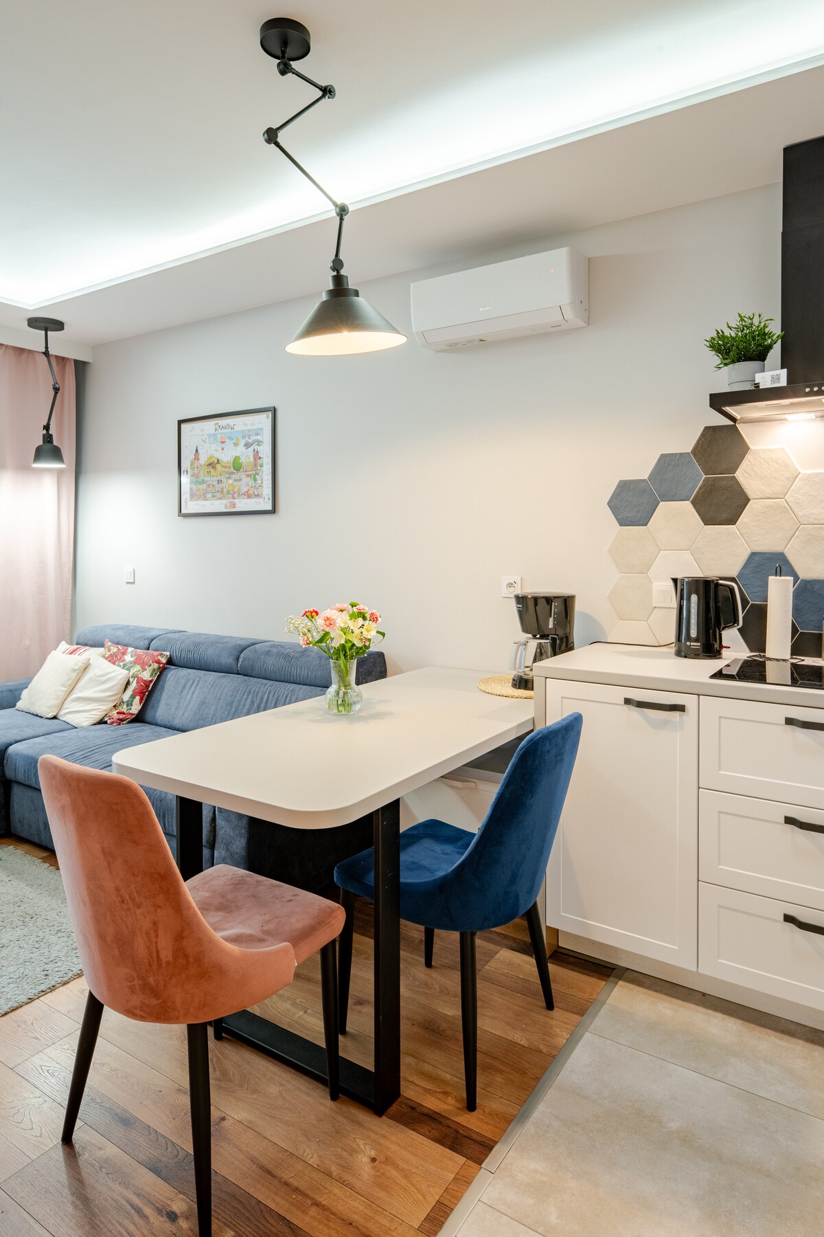 Lujoso y extraordinario interior, donde desde el principio te sentirás como en casa. La comodidad, el aire acondicionado y el equipo cuidado te permitirán descansar bien y relajarte en un jucuzzi en la terraza, tener una vista sobre el río Vístula, ¡se convertirá en una experiencia que deseas repetir! Las partes más importantes de Cracovia están a la mano: puedes llegar fácilmente a los monumentos más importantes, incluso teniendo un agradable paseo, y volviendo puedes detenerte en la orilla del río y disfrutar viendo la puesta de sol.