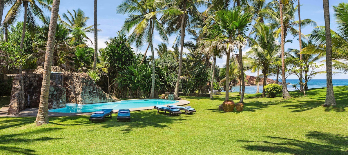 Beautiful, private beach house on the beachfront. Weligama Beach is famous for its safe swimming and learn to surf beach all year. Surf, swim and relax at our lovely house with breakfast included daily. Relax in the private garden and pool, go touring or step onto the beach and surf. Sleeping 9 comfortably, the house is perfect for large or extended families, groups, or friends travelling together. Sri Lanka is a fantastic adventure, our house the perfect location for a variety of travelers.