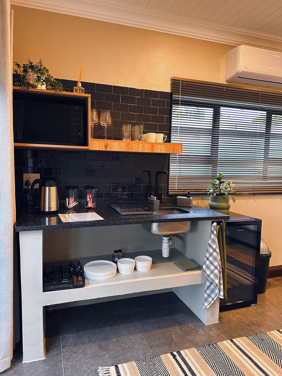 El estudio de lujo cuenta con una cama tamaño queen y un baño privado. Disfruta de wifi, aire acondicionado y una televisión inteligente con DStv y Netflix. Una cocina bien equipada con un quemador de gas, microondas y nevera añade comodidad a su estancia.