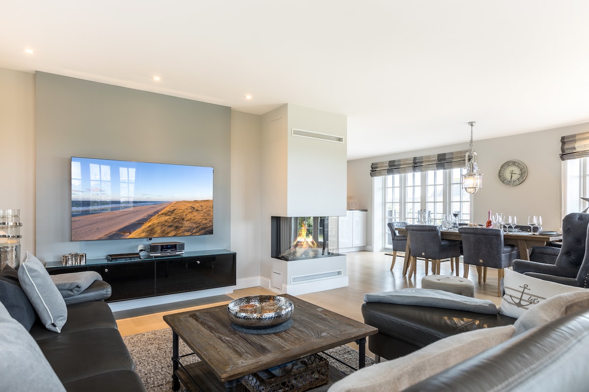Das Luxushaus Sylt Royal in Westerland auf Sylt bietet dir auf 180 m² Platz für bis zu 8 Gäste. Diese stilvolle Unterkunft verfügt über 3 Schlafzimmer, 2 Badezimmer und ein Gäste-WC. Du kannst die offene Küche, das gemütliche Wohnzimmer und die eigene Terrasse mit Gartenblick genießen. Erlebe Annehmlichkeiten wie eine Sauna, Fitness und WLAN mit hoher Geschwindigkeit. Haustiere sind willkommen. Nur 300 m vom Strand entfernt, genießt du die perfekte Lage für entspannende Tage am Meer.